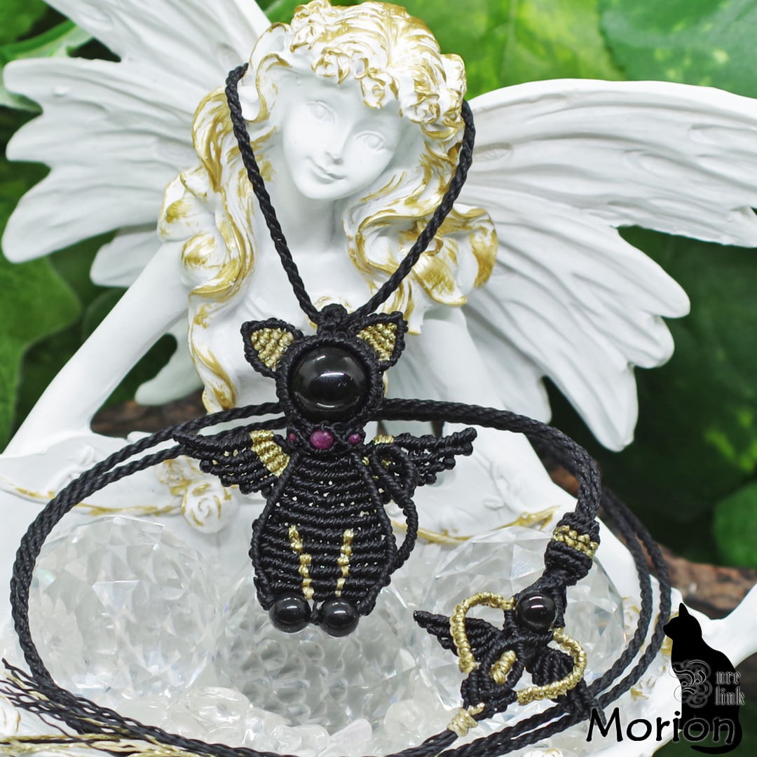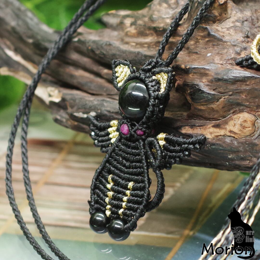 猫天使・お顔が『モリオン』な!!猫マクラメ編みネックレス
