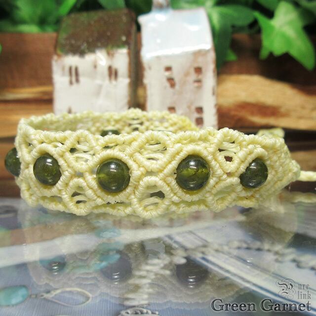 決断力を与える魔石・緑色柘榴石『グロッシュラーライトガーネット』マクラメ編みブレス2