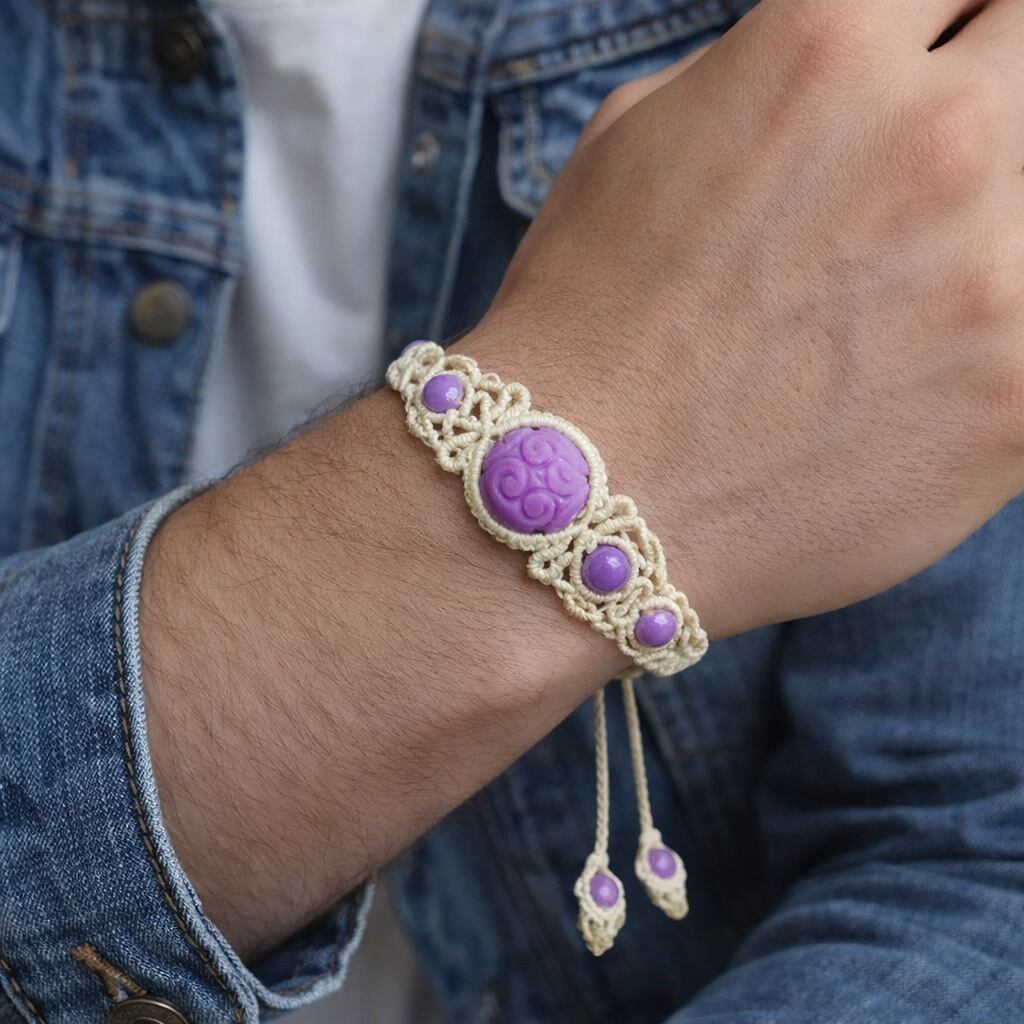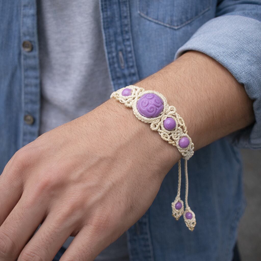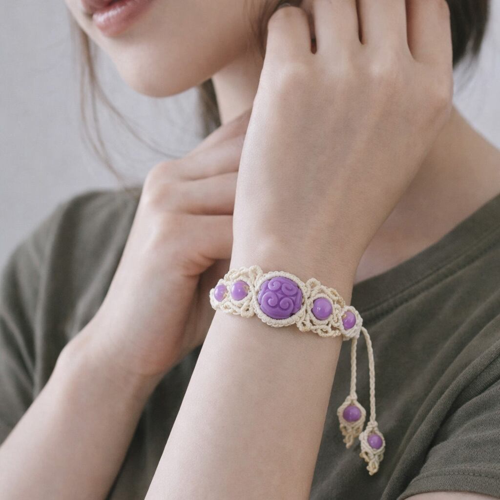 『フォスフォシデライト』心を癒す紫魔石マニ車彫マクラメブレスレット