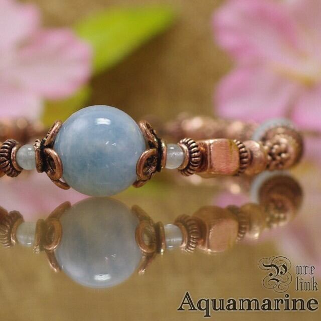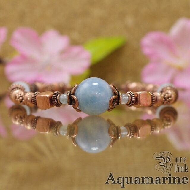 青い幸福の石『アクアマリン』コッパー』ハンドメイドブレスレット