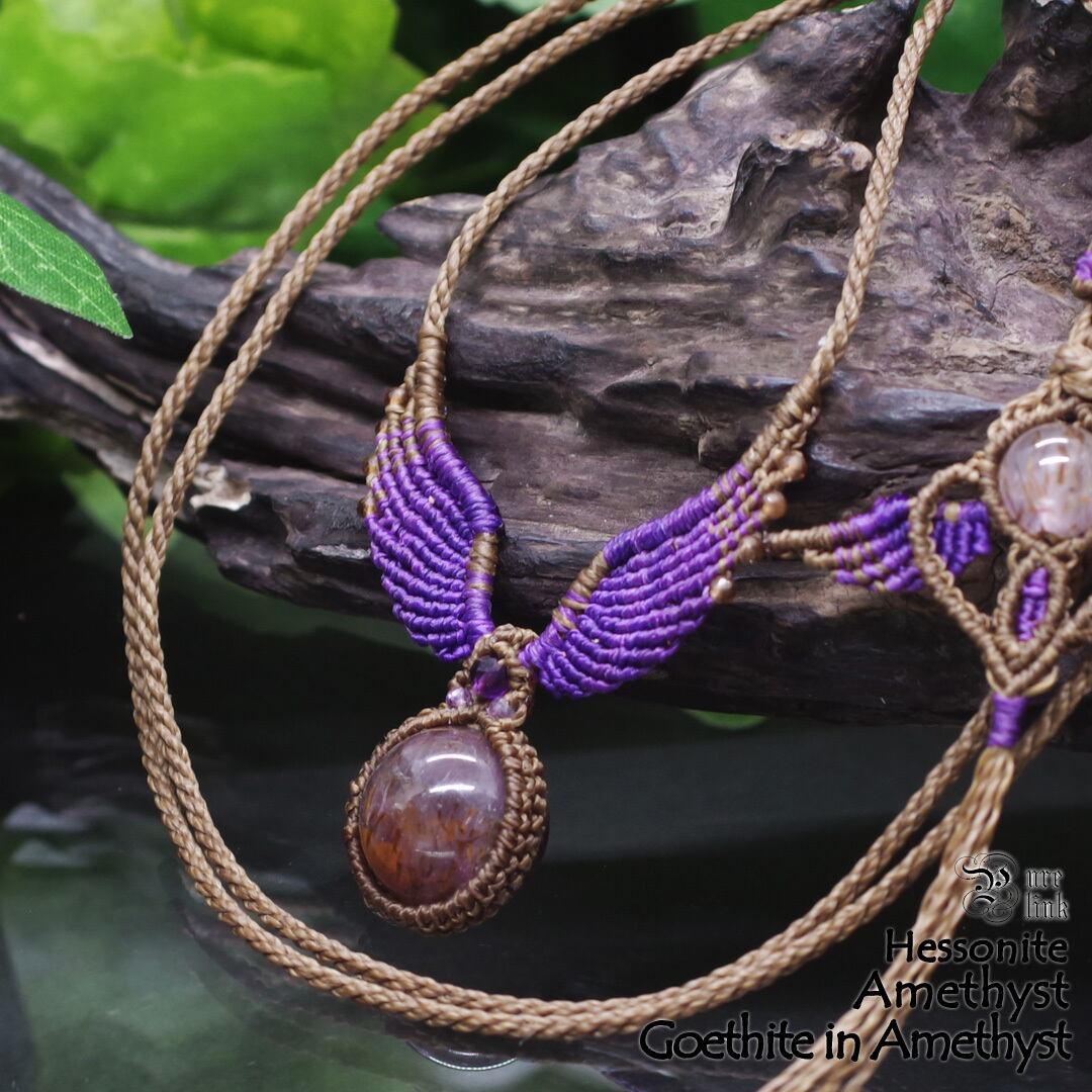 レア★慈愛をもたらす魔石『ゲーサイトインアメジスト』天使の羽根!?羽翼マクラメ編ネックレス
