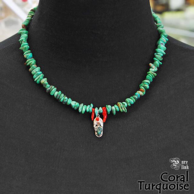 ナチュラルターコイズと本赤珊瑚のサンダルモチーフネックレス(S925)
