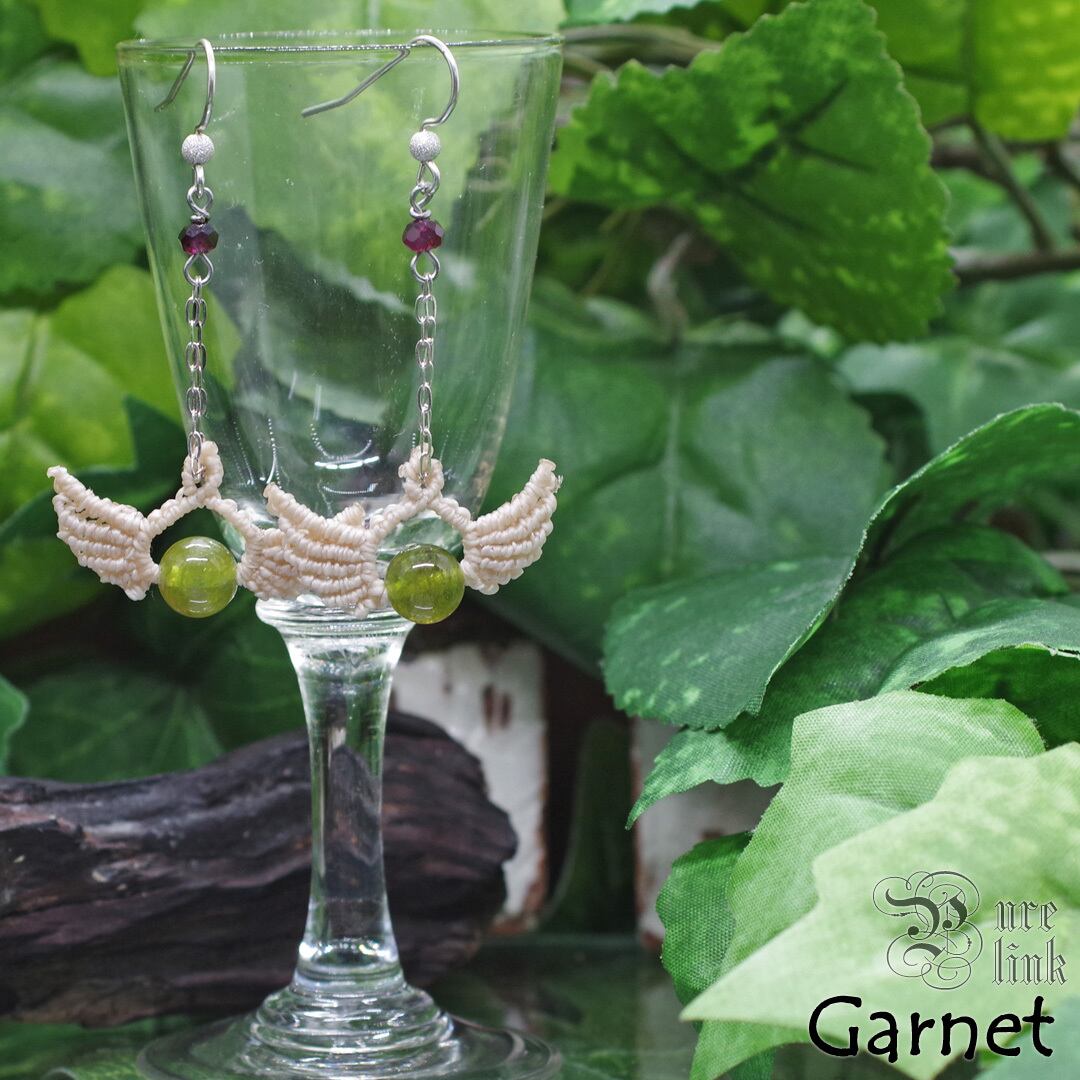 グロッシュラーライトガーネット 天然石ピアス《マクラメ編み》天使の翼デザイン