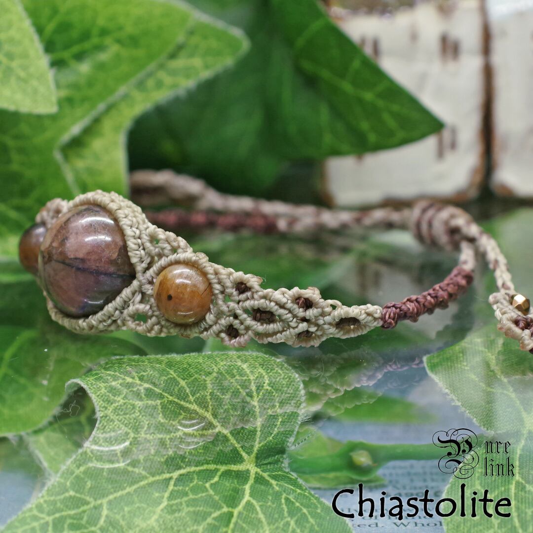 黒十字模様の希少石『キャストライト』マクラメ編みブレスレット《天然石/ハンドメイド》