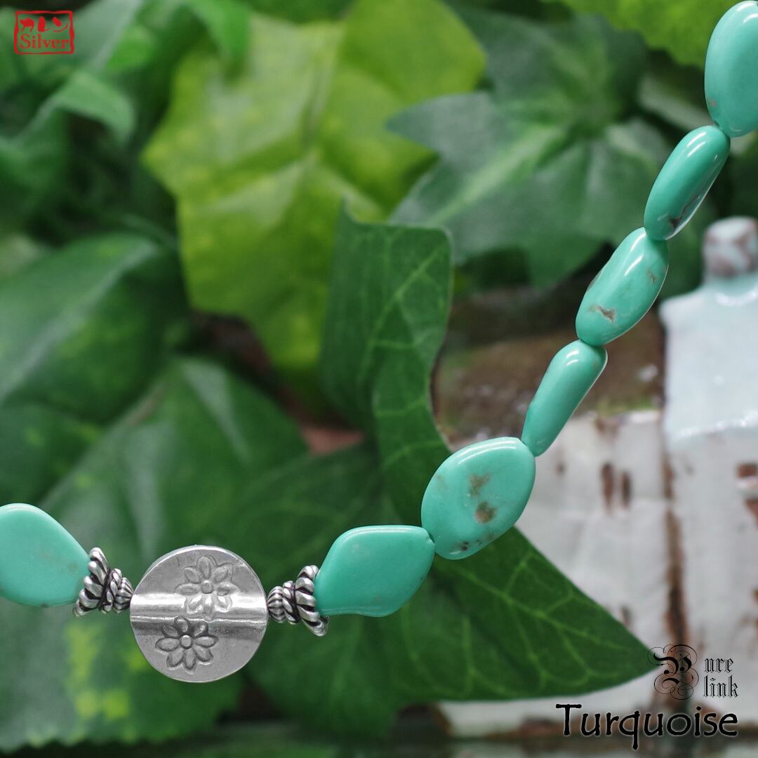 ターコイズ カレンシルバー花彫ネックレス《天然石/ハンドメイド》