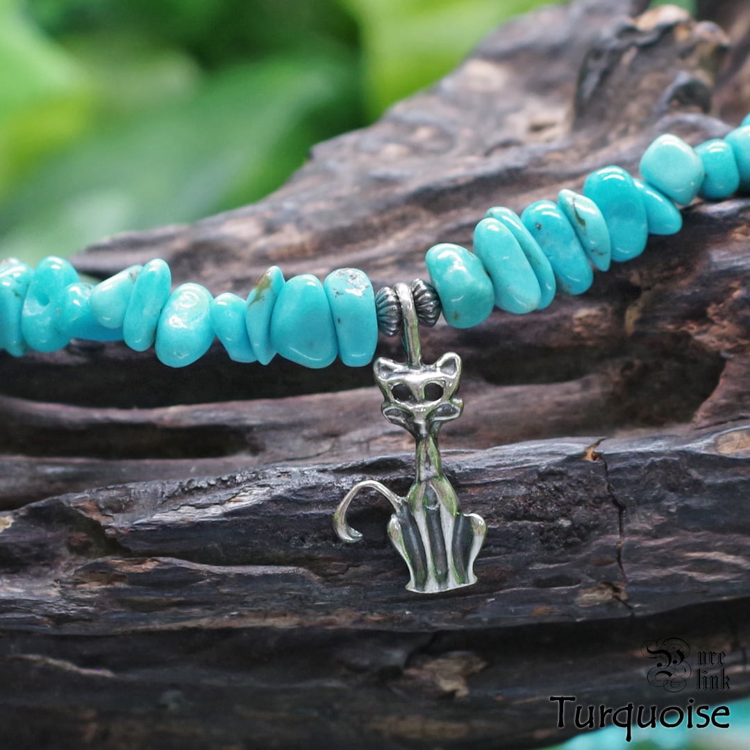 心をつなぐ聖なる青石『ターコイズ(Turquoise)』ネコシルバーネックレス