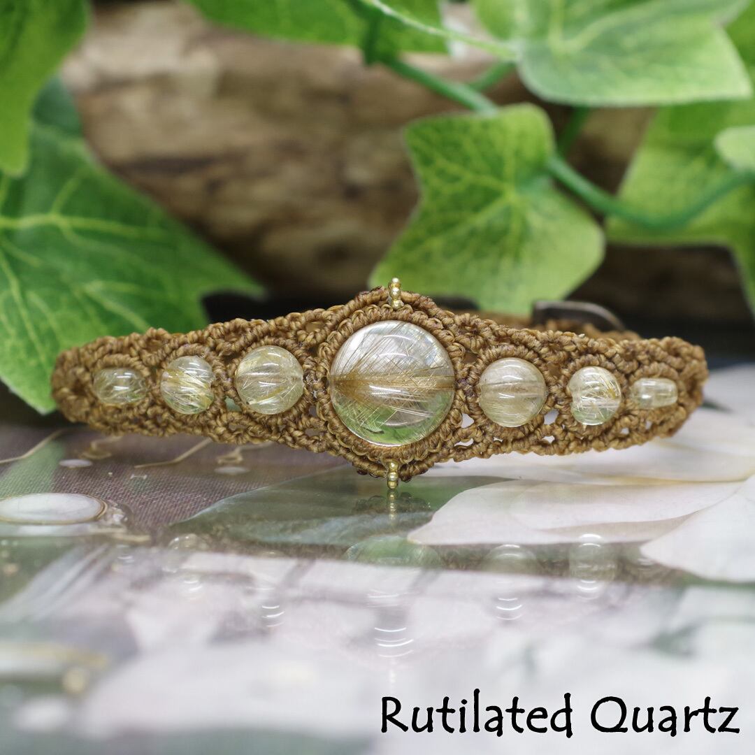 金色に輝く『ルチルクォーツ』マクラメ編ハンドメイドブレス(尾錠)