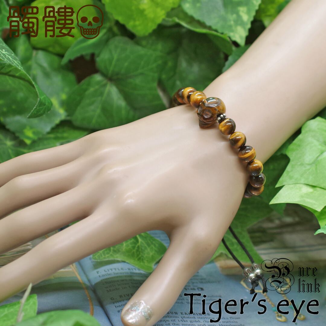 神眼虎眼石『タイガーアイ(Tiger’s eye)』髑髏彫ハンドメイドシルバーブレスレット