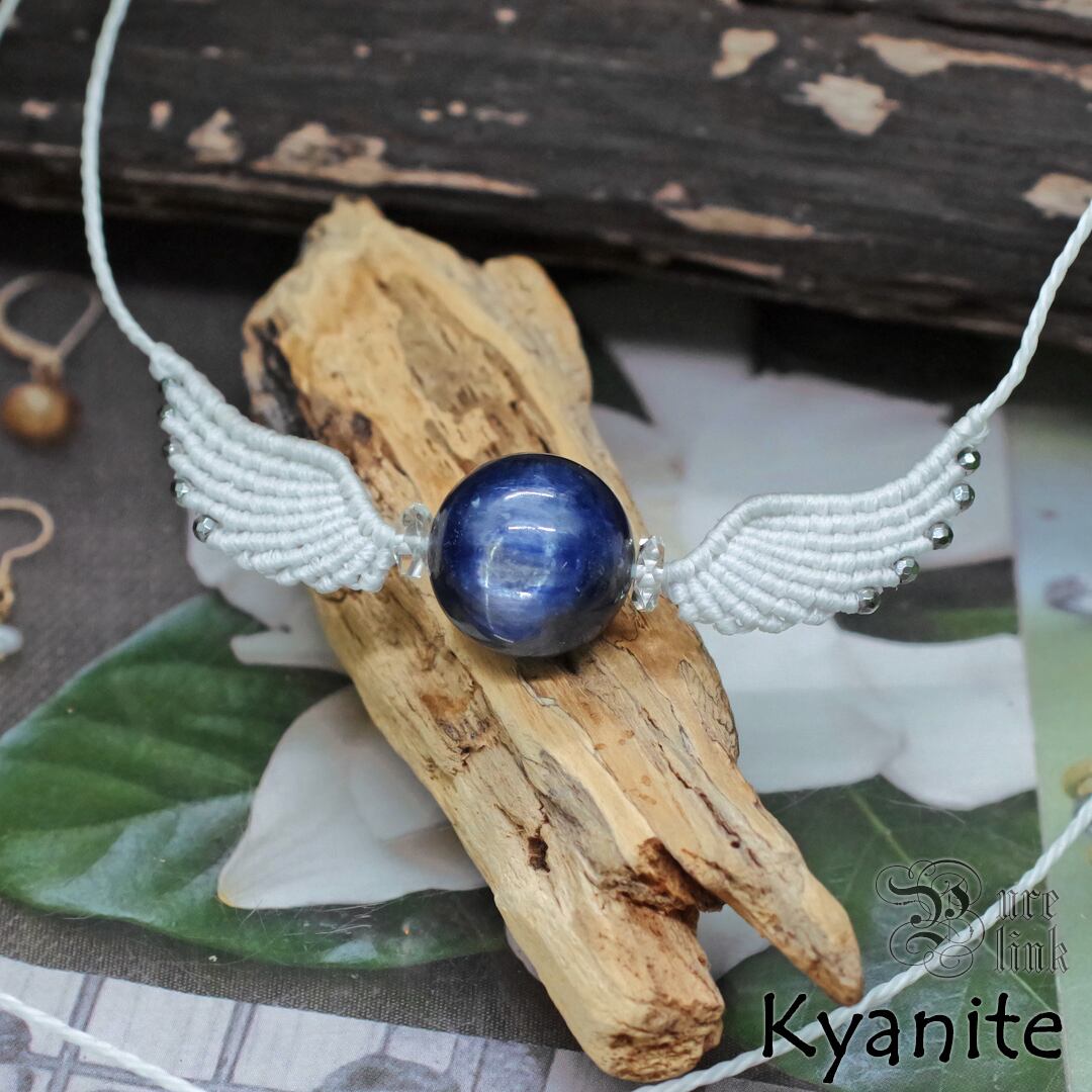 白銀に輝く『カヤナイト/羽翼マクラメ編トップネックレス』