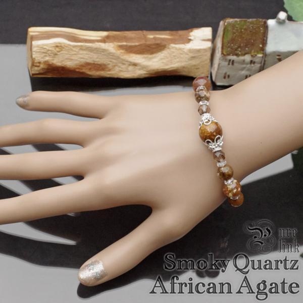 太古の護符『アフリカンアゲート&スモーキークォーツ』天然石ブレスレット2(African Agate / Smoky Quartz)
