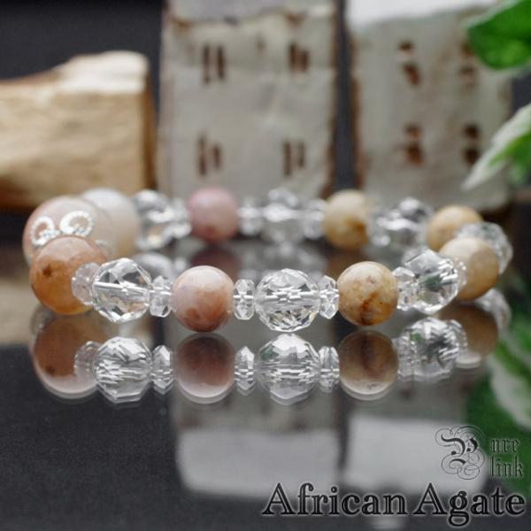 光をまとった癒しの彩り『アフリカンアゲート&水晶スターカット』天然石ブレスレット(African Agate / Crystal)