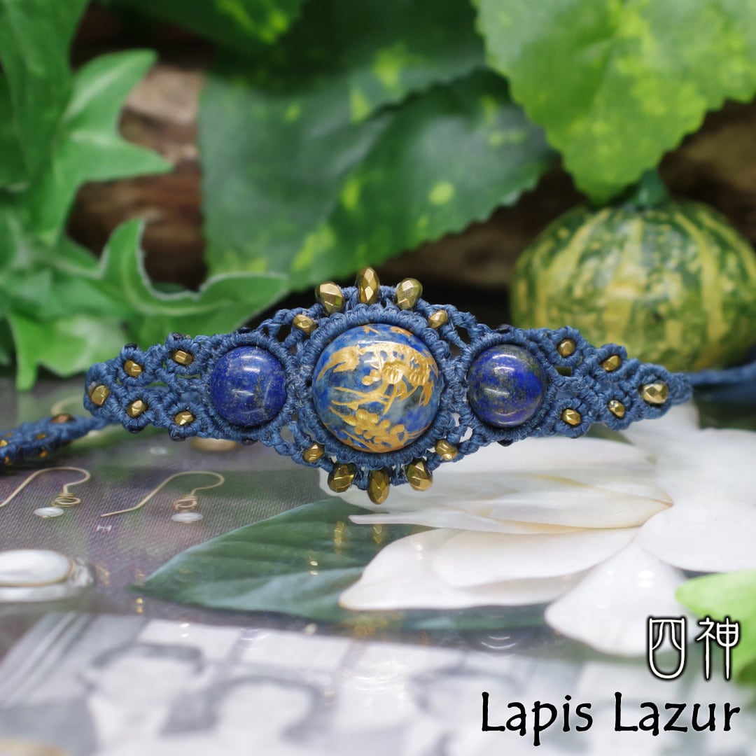 『ラピスラズリ』四神金彩・蒼き聖石マクラメ編みブレスレット