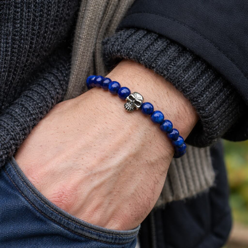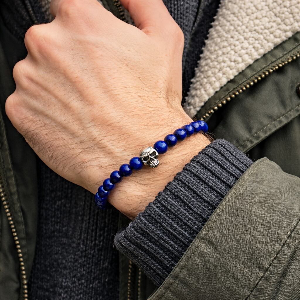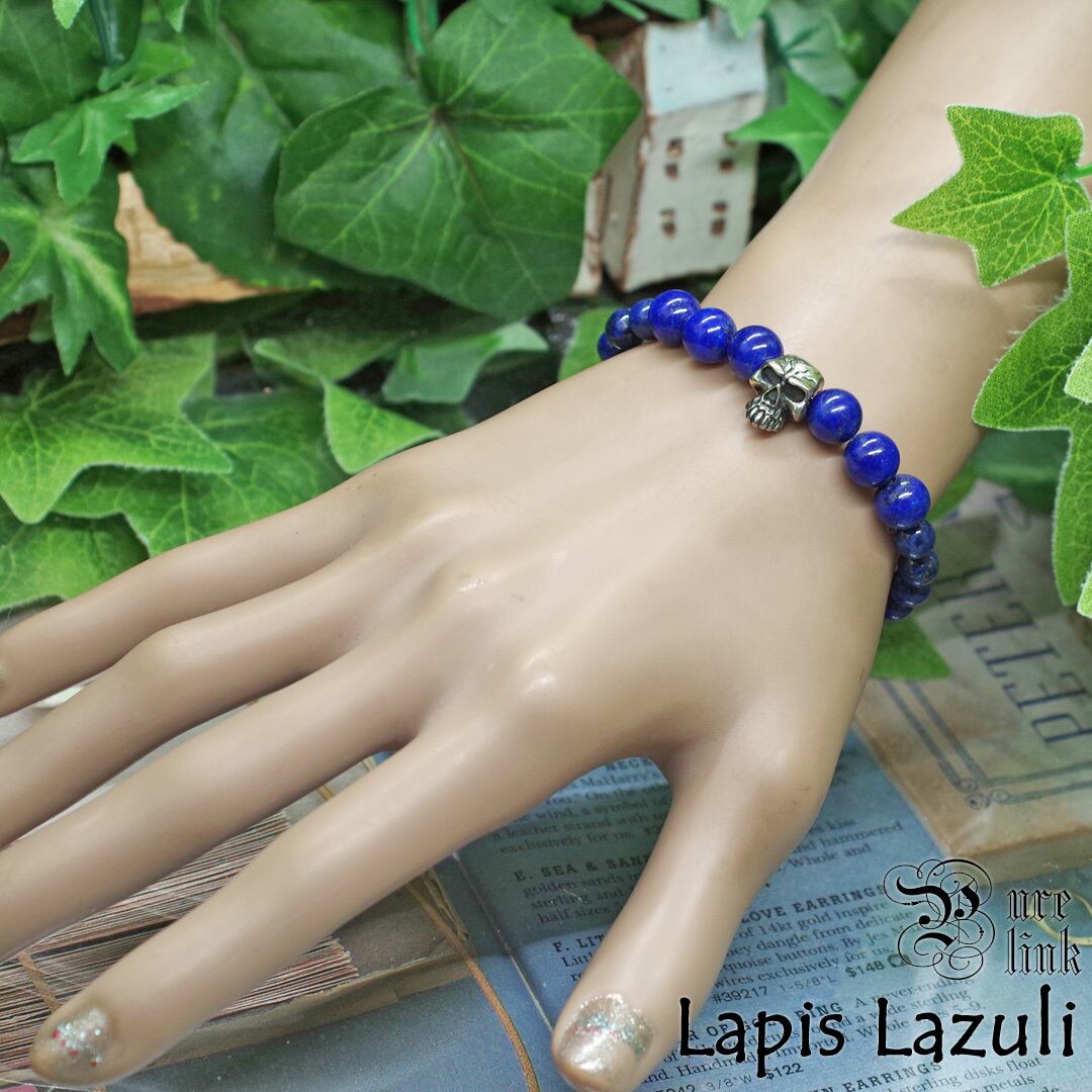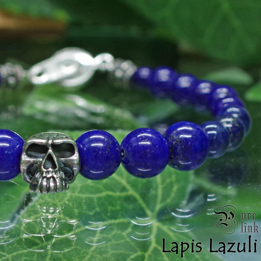 落ち着いた存在感をもつ『ラピスラズリ』と、シルバー925のスカル(髑髏)モチーフを組み合わせたブレスレットです。