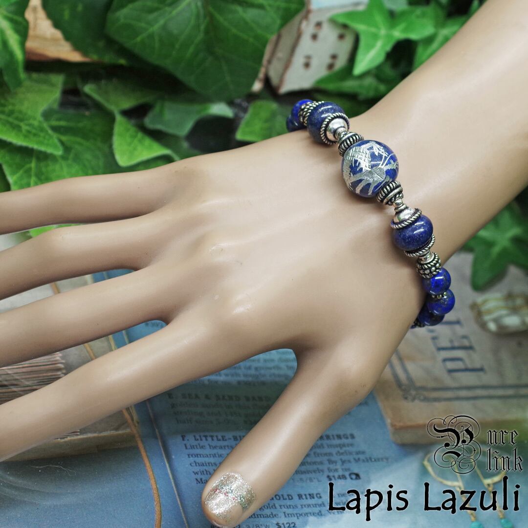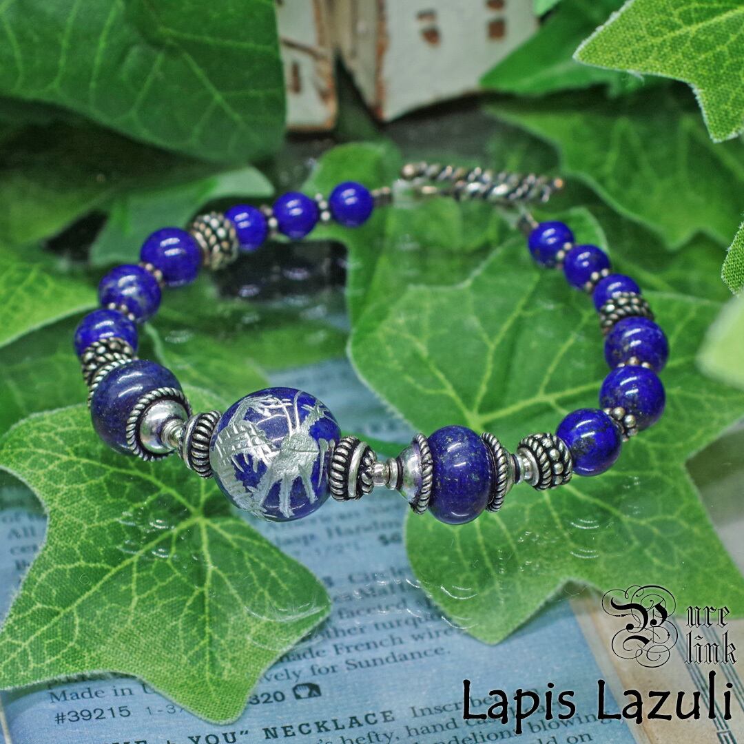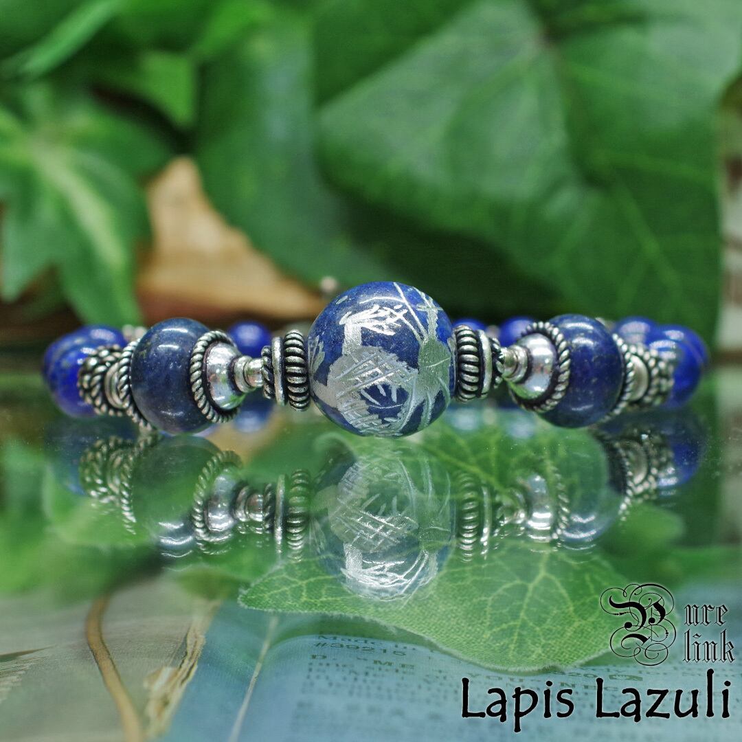 蒼き聖石 ラピスラズリ 銀龍彫刻 天然石ブレスレット マンテル留め