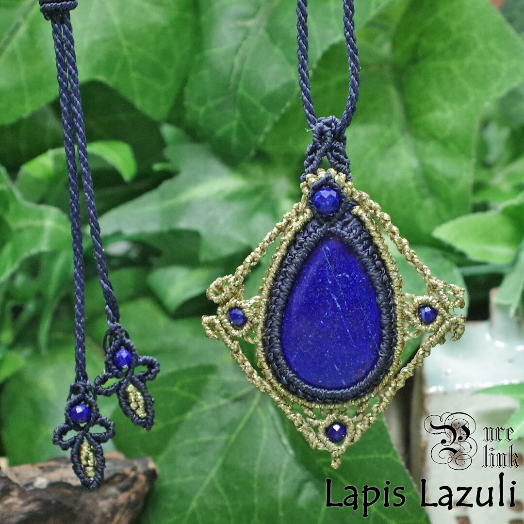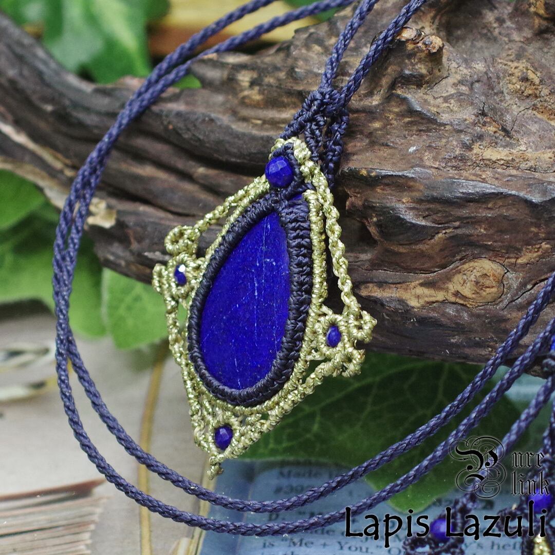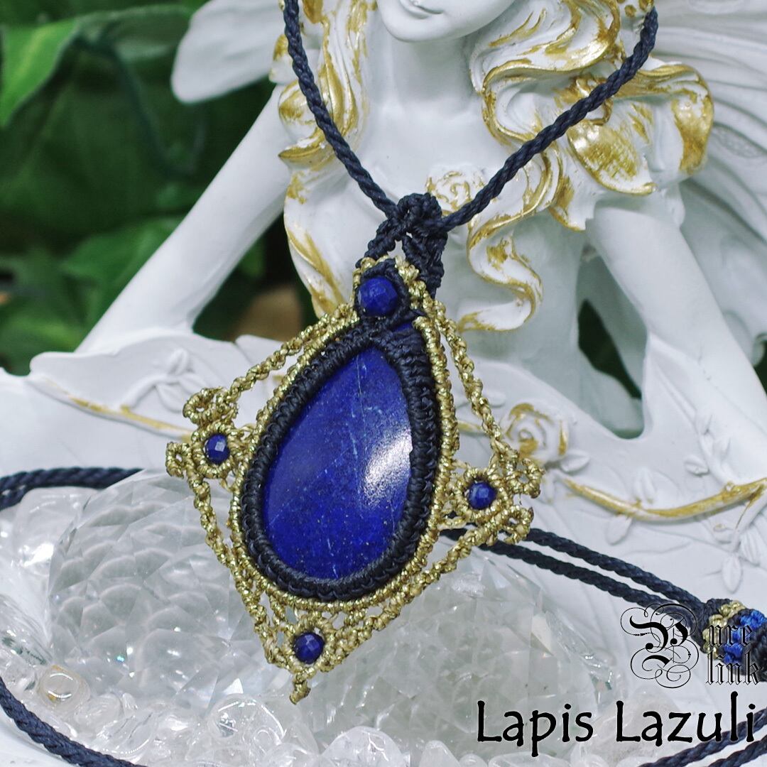 女神イシュタルの護符魔石『ラピスラズリ』マクラメ編みトップネックレス《天然石/ハンドメイド》