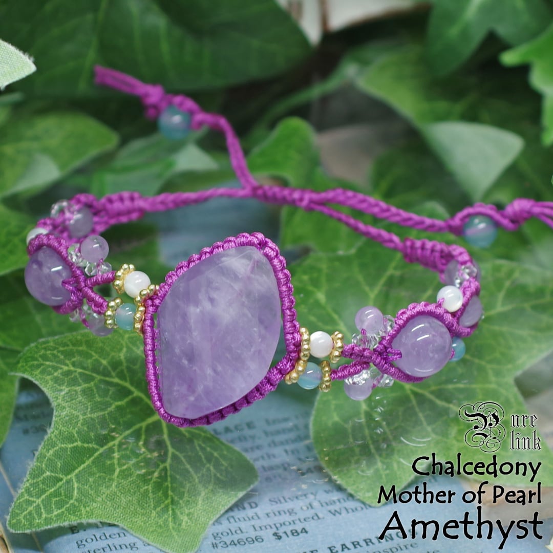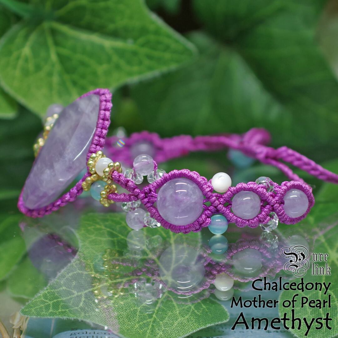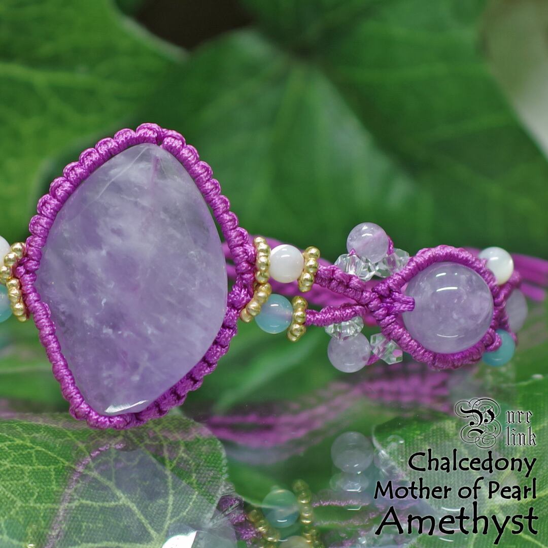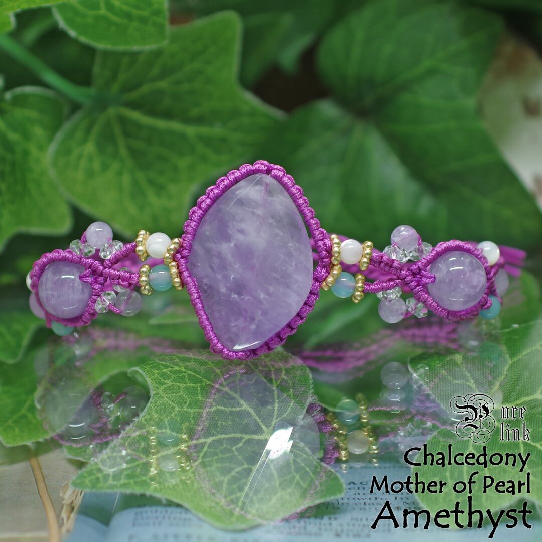 優しい光をまとう アメジスト×シーブルーカルセドニー×マザーオブパール マクラメブレスレット《天然石/ハンドメイド》