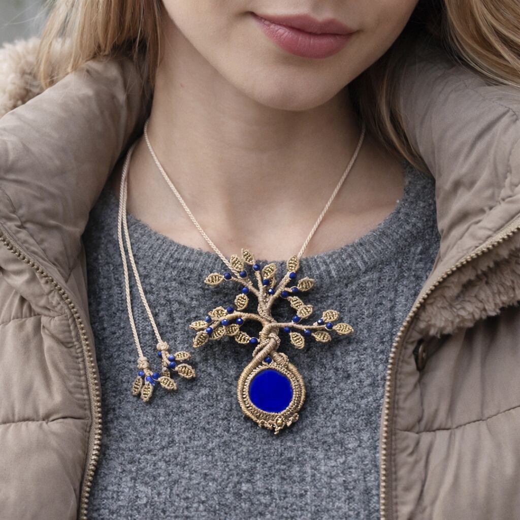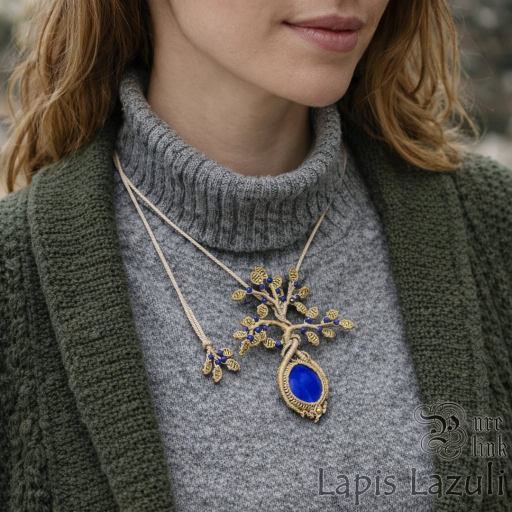 ラピスラズリ 生命の樹 マクラメ編みネックレス《天然石/ハンドメイド》
