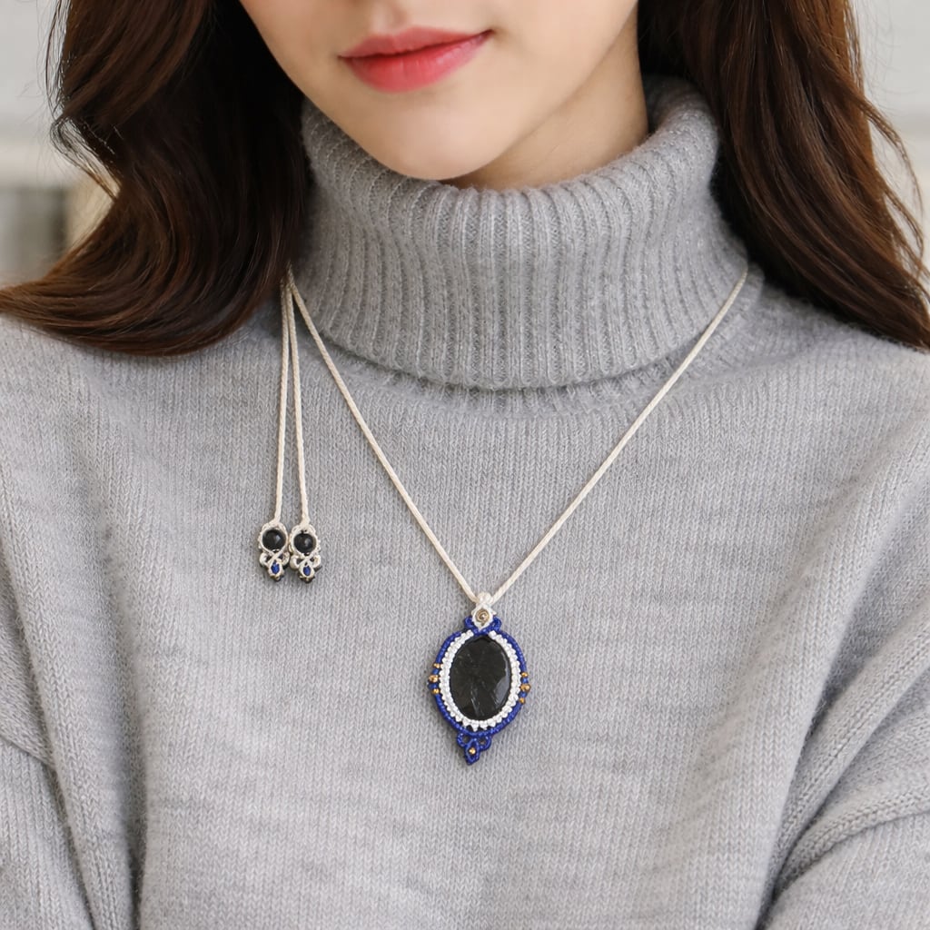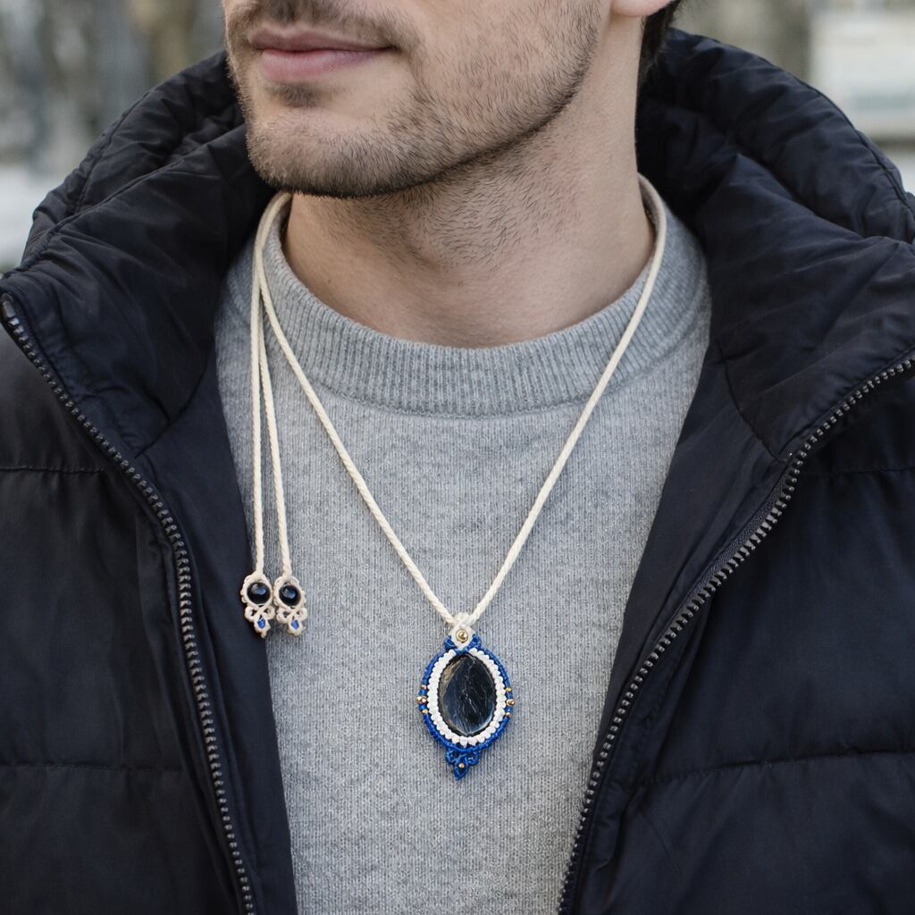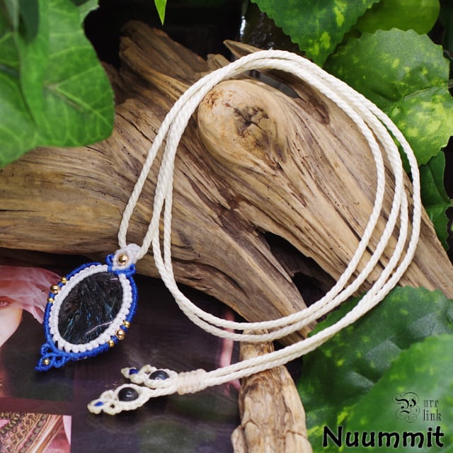 太古の石『ヌーマイト』を主役に仕立てた、マクラメ編みネックレスです。