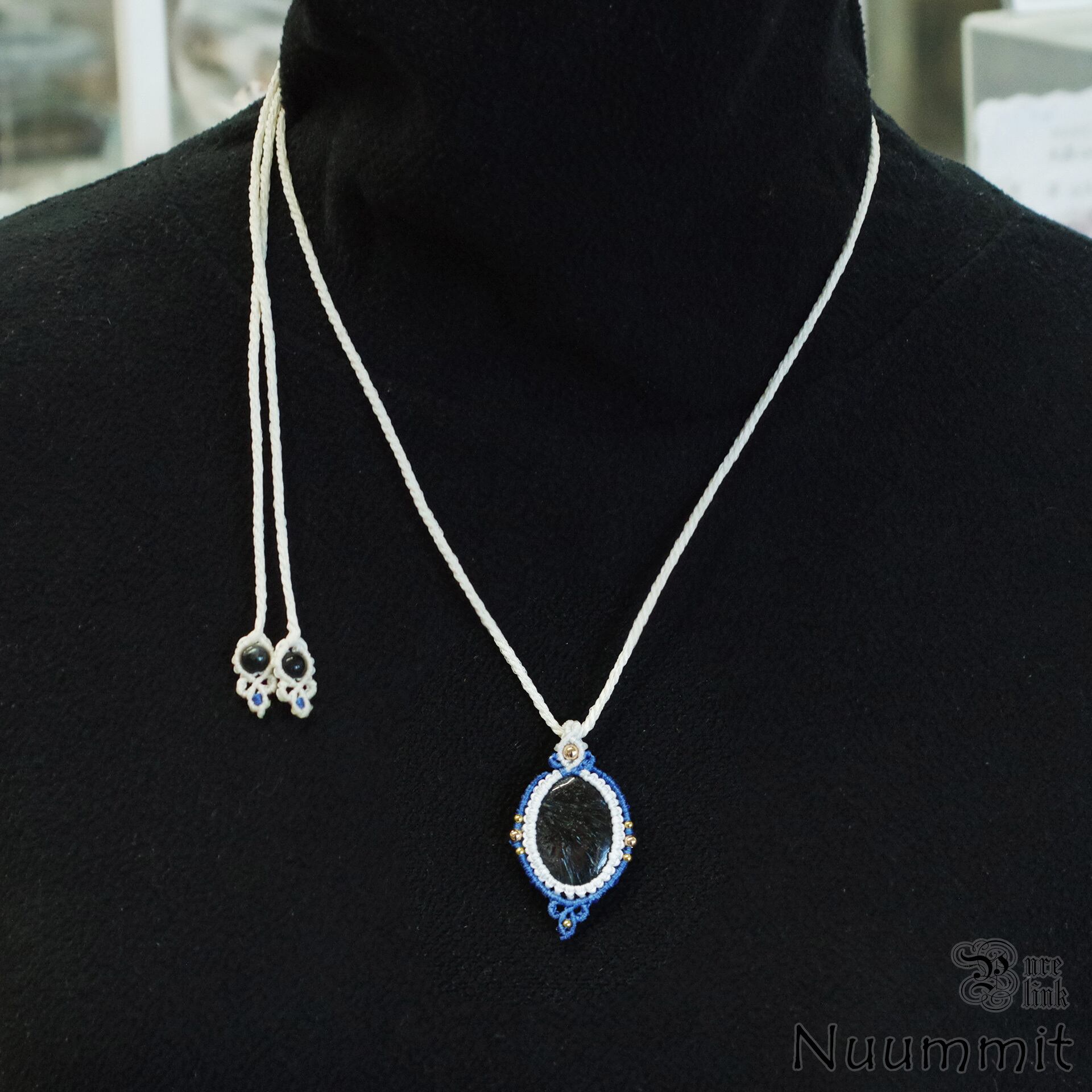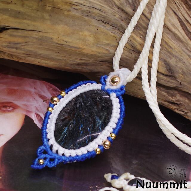 中央には約30mm×22mmの『ヌーマイト』を配置し、周囲をホワイトとブルーのコードで丁寧に包み込みました。