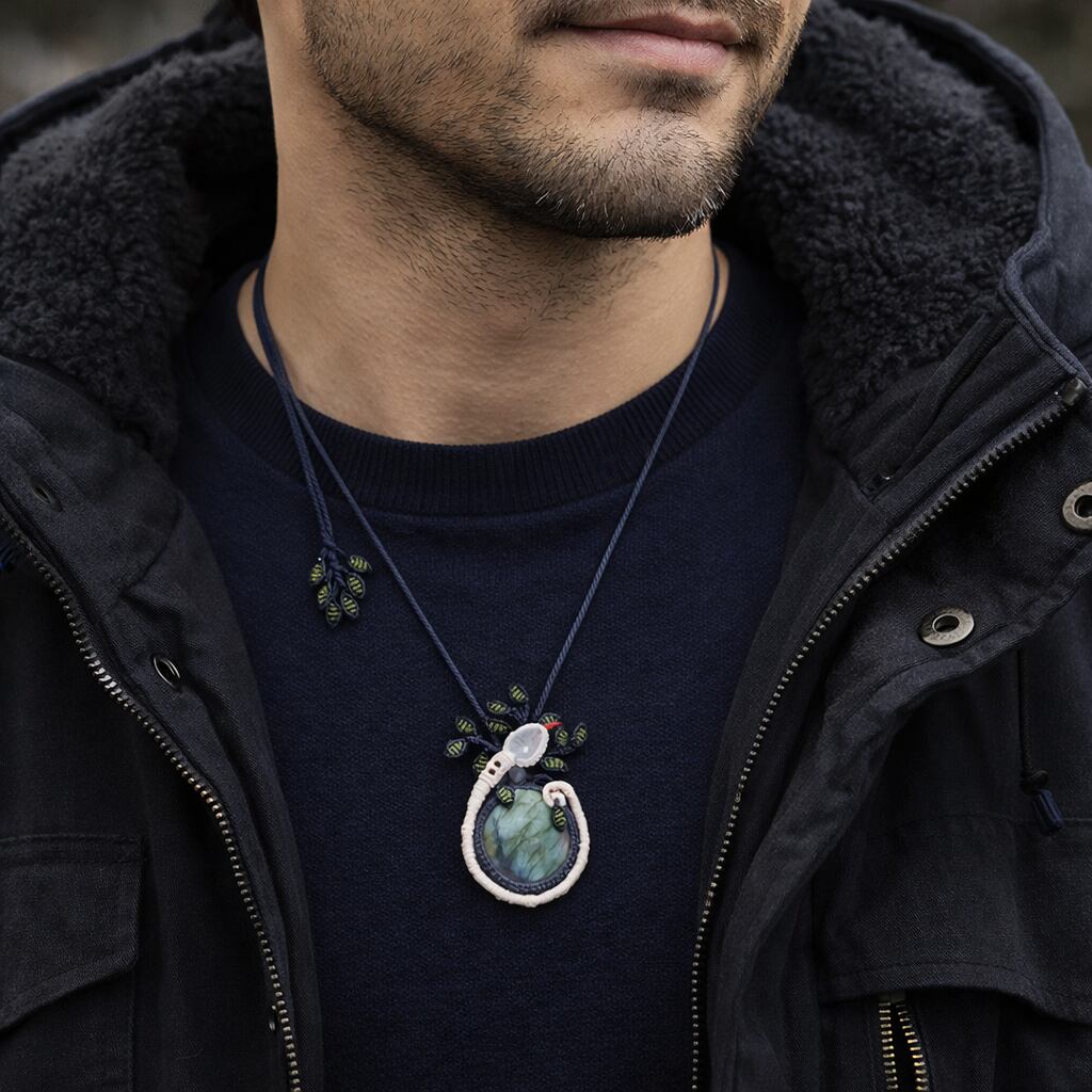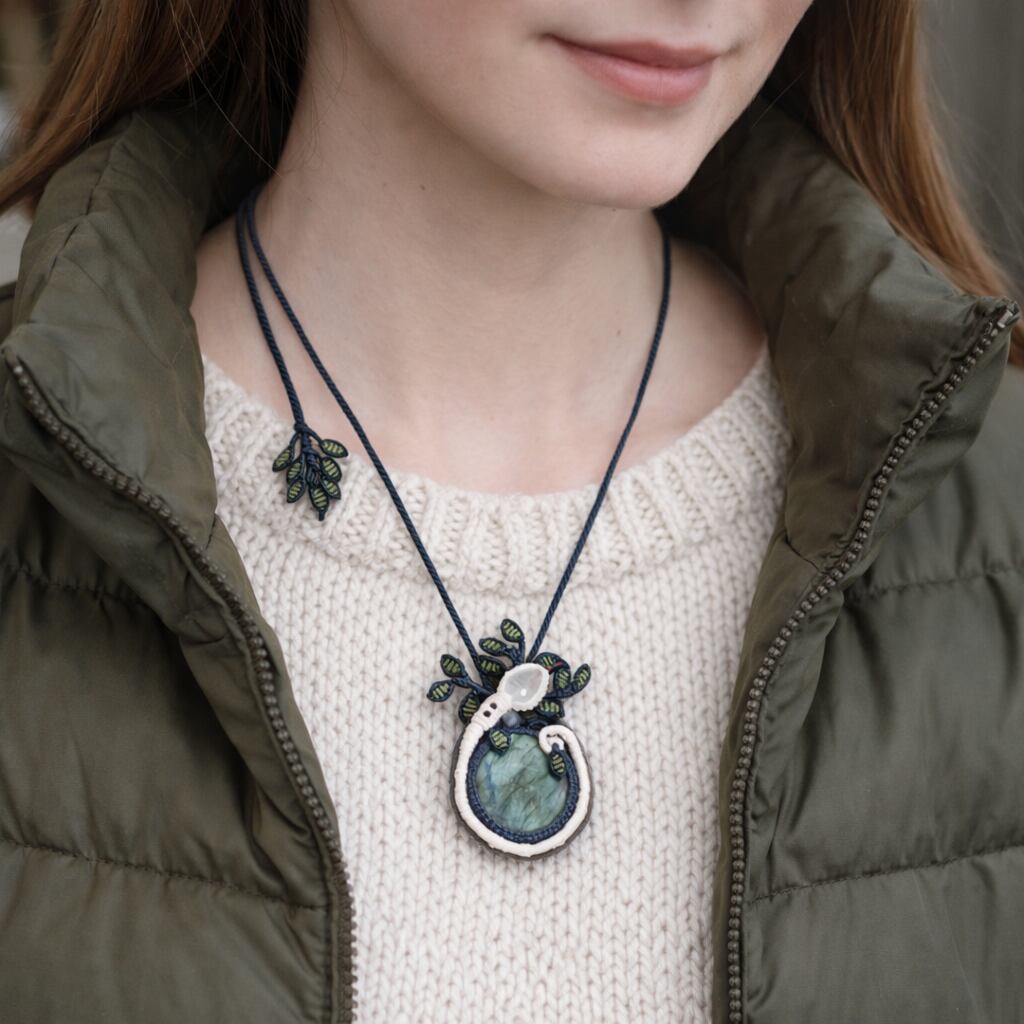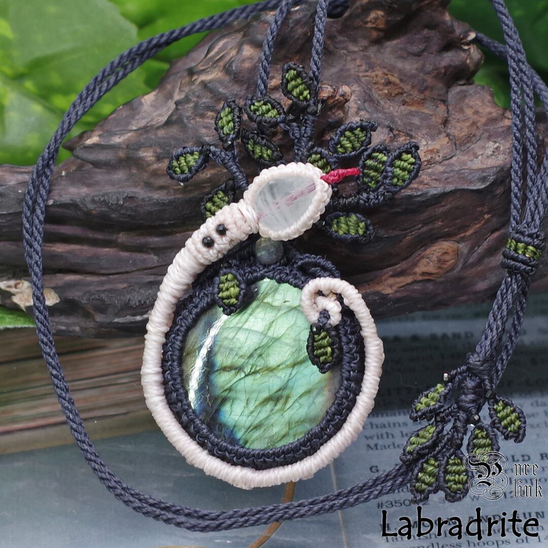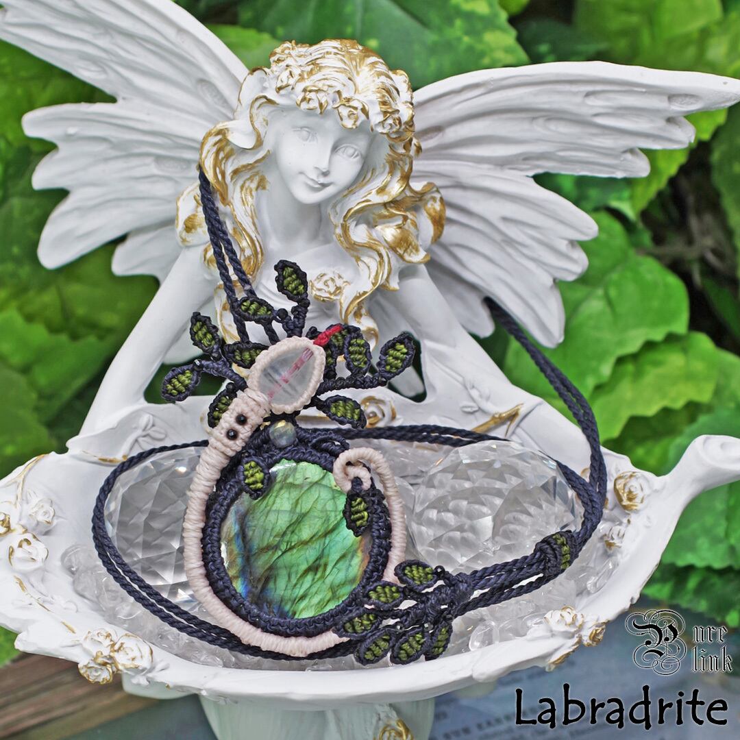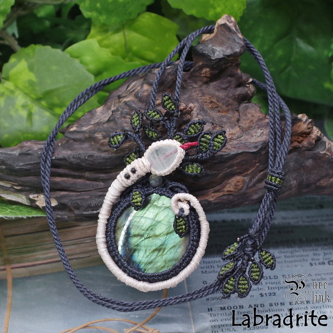 『ラブラドライト』生命の樹・蛇モチーフ・マクラメ編みネックレス