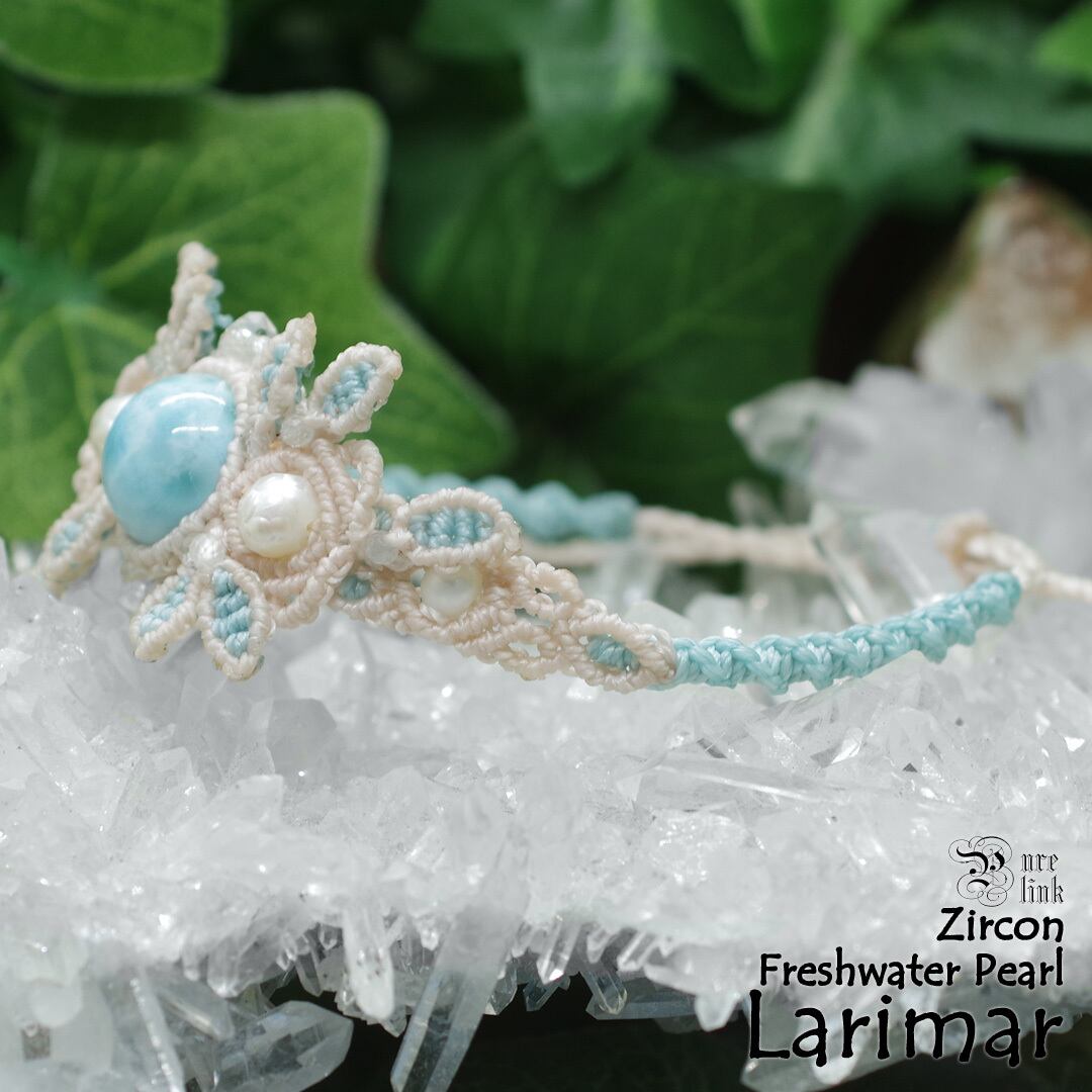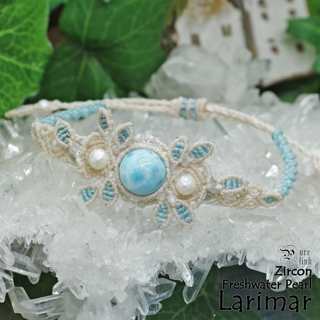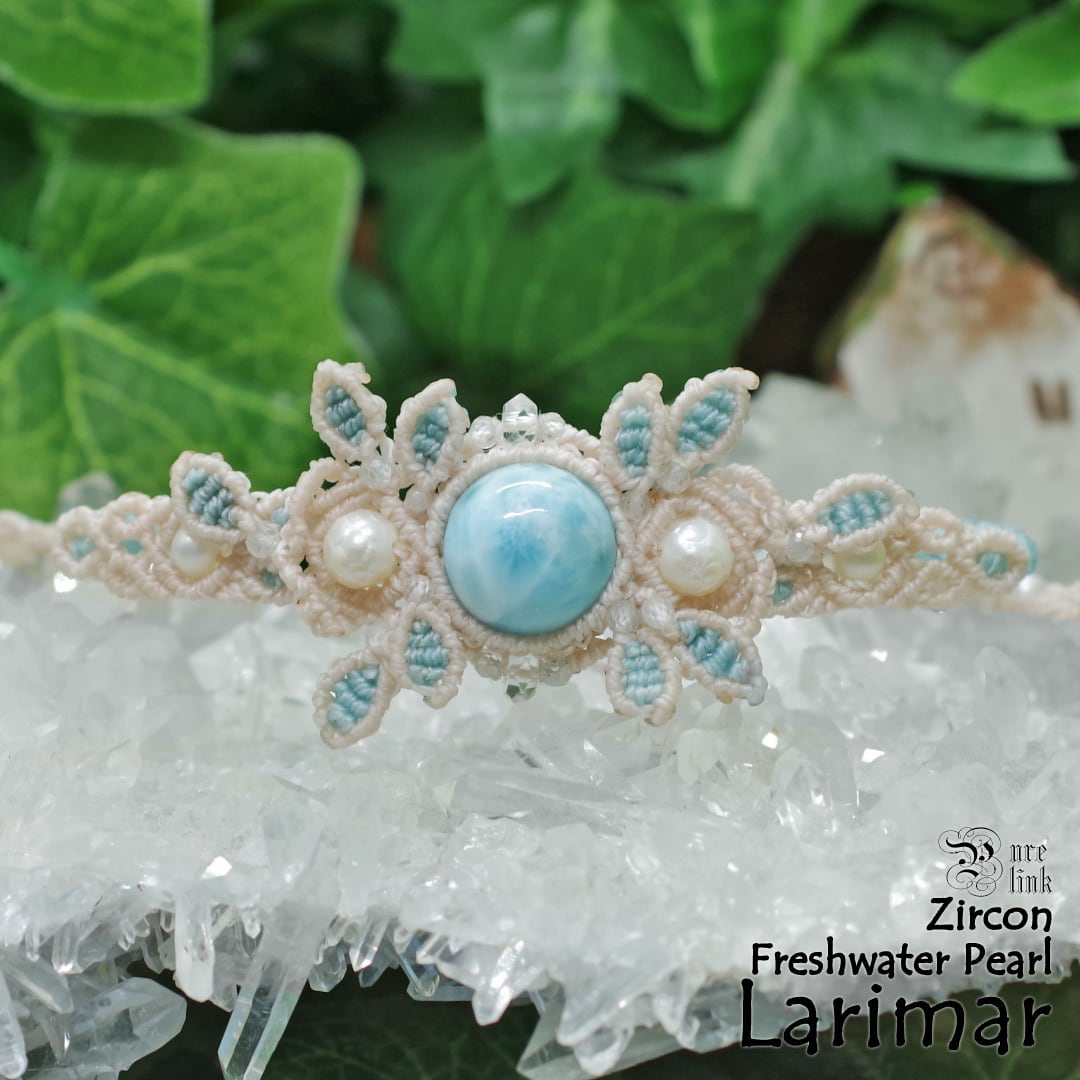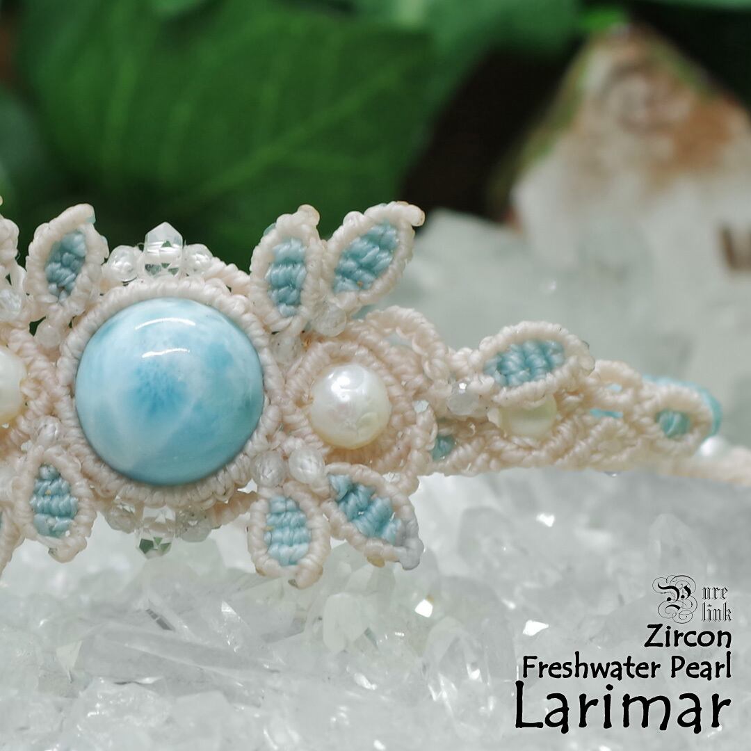中心に据えた『ラリマー』は、淡いブルーの中に雲のような模様を含み、見つめるたびに心がほどけるような表情を持つ天然石です。
