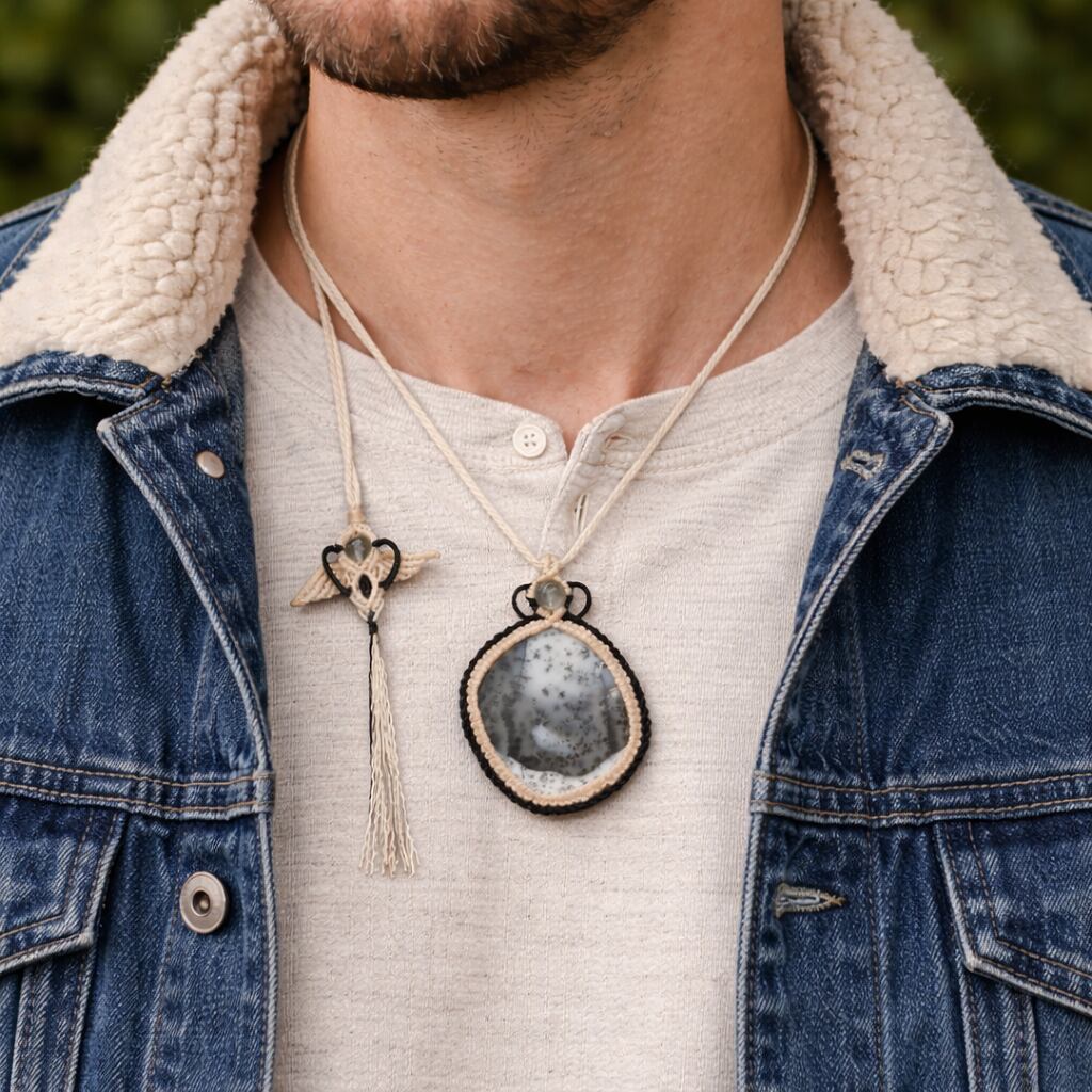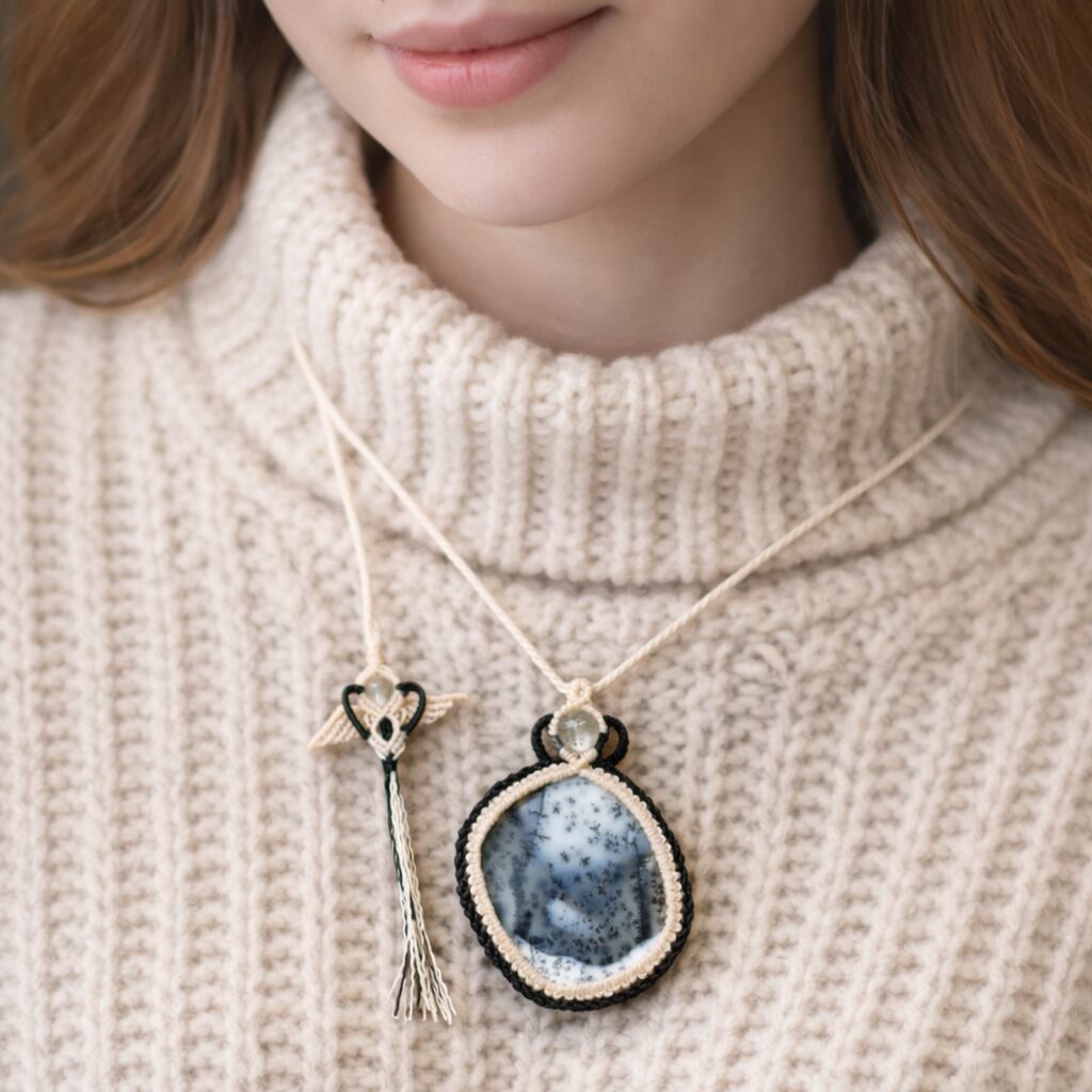 浄化と癒しの石『デンドライトオパール』『デンドライトオパール』マクラメ編みネックレス