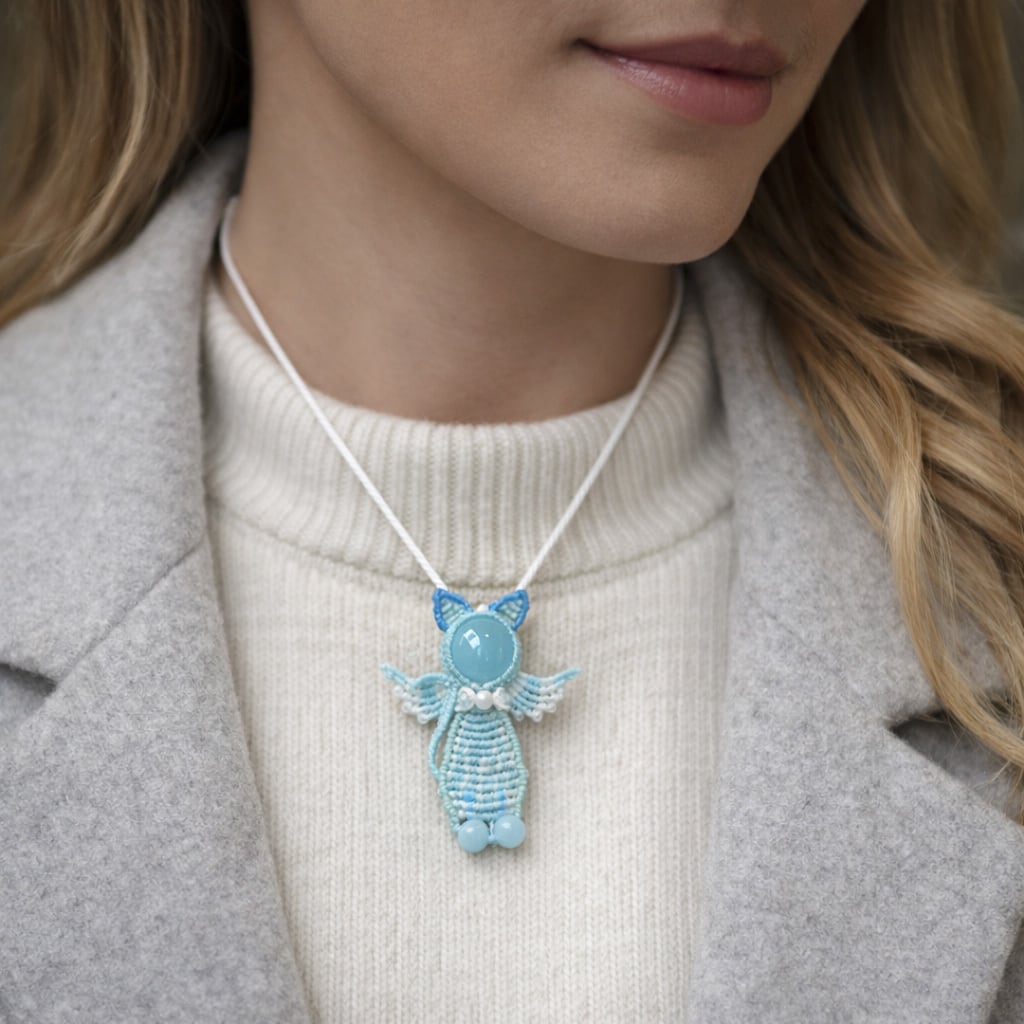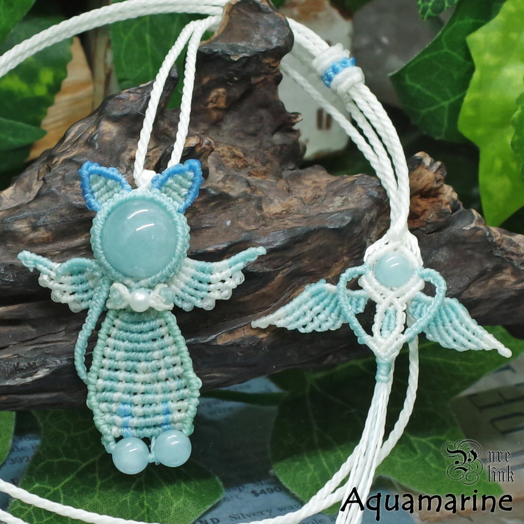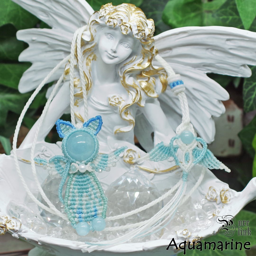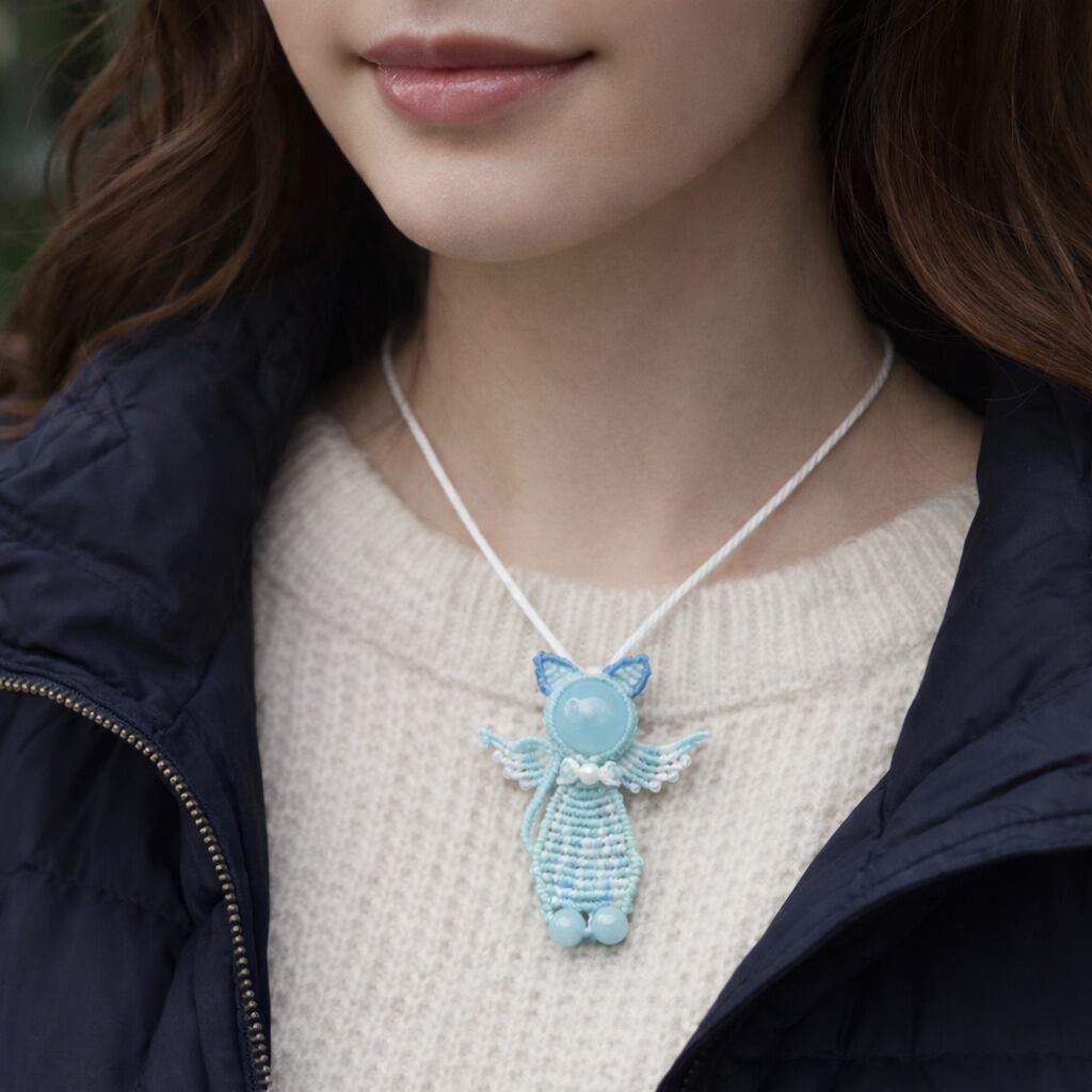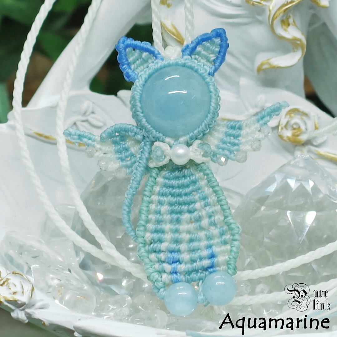 猫天使・お顔が『アクアマリン』な!!猫マクラメ編みネックレス3