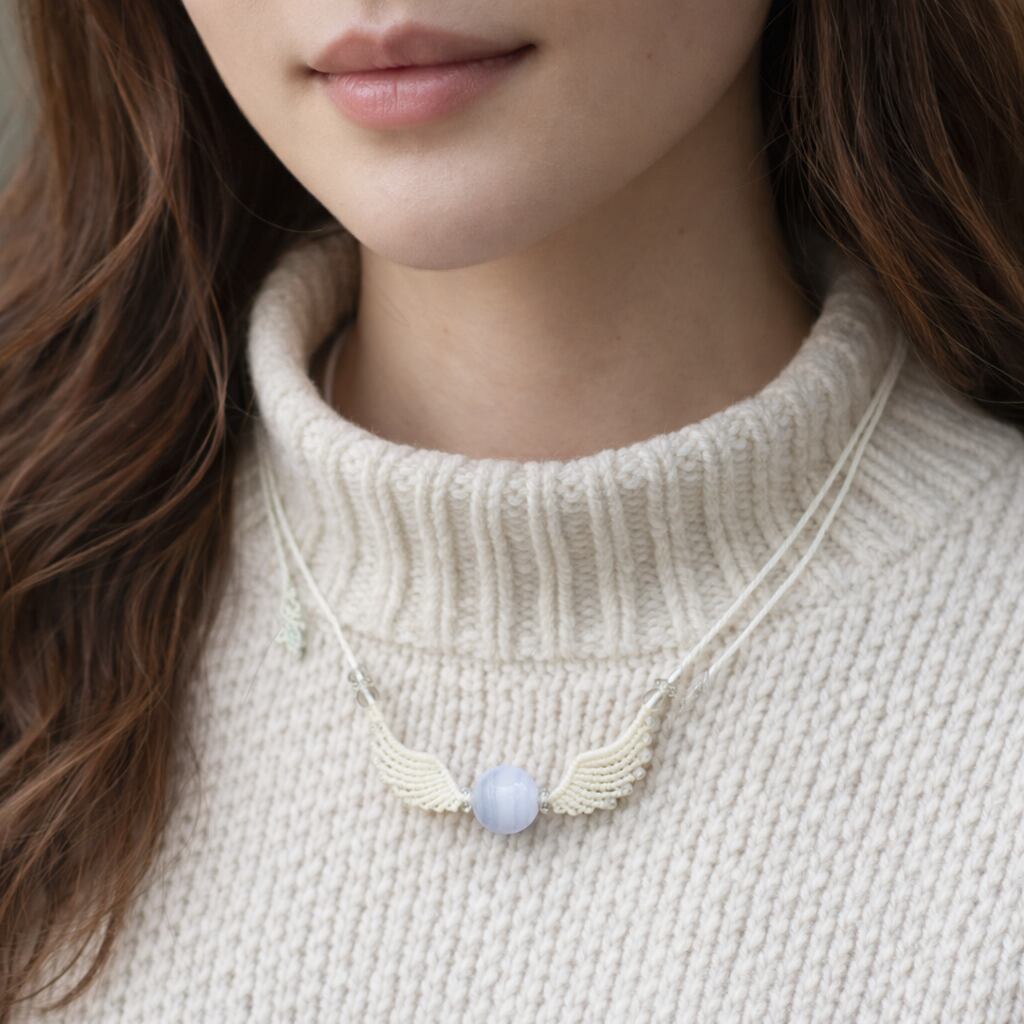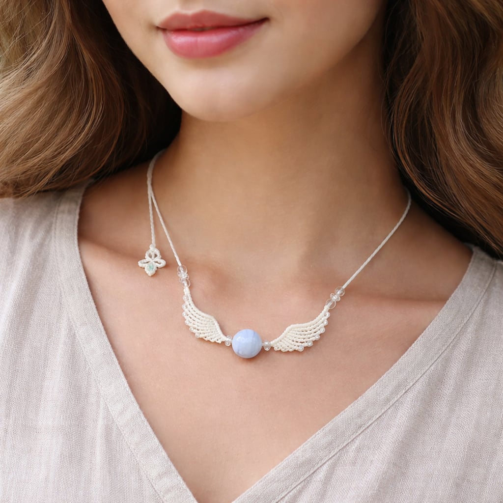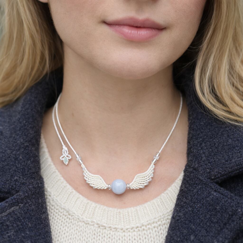 魅了する魔石『ブルーレースアゲート』天使の羽根!?羽翼マクラメ編トップネックレス