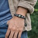 なお、こちらも、スライドすることによりサイズ調整も可能な男女共におススメの1点もののハンドメイドマクラメ編みブレスレットです。