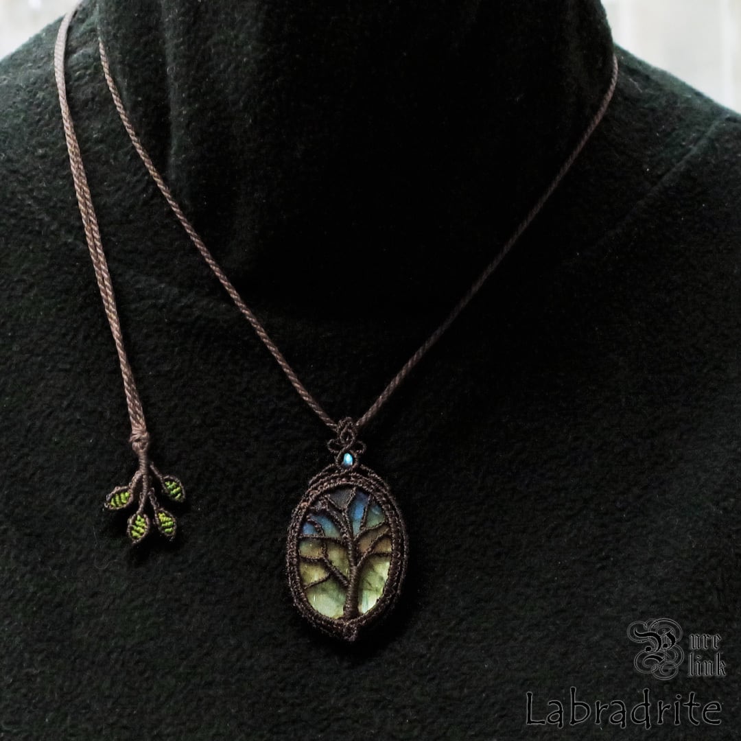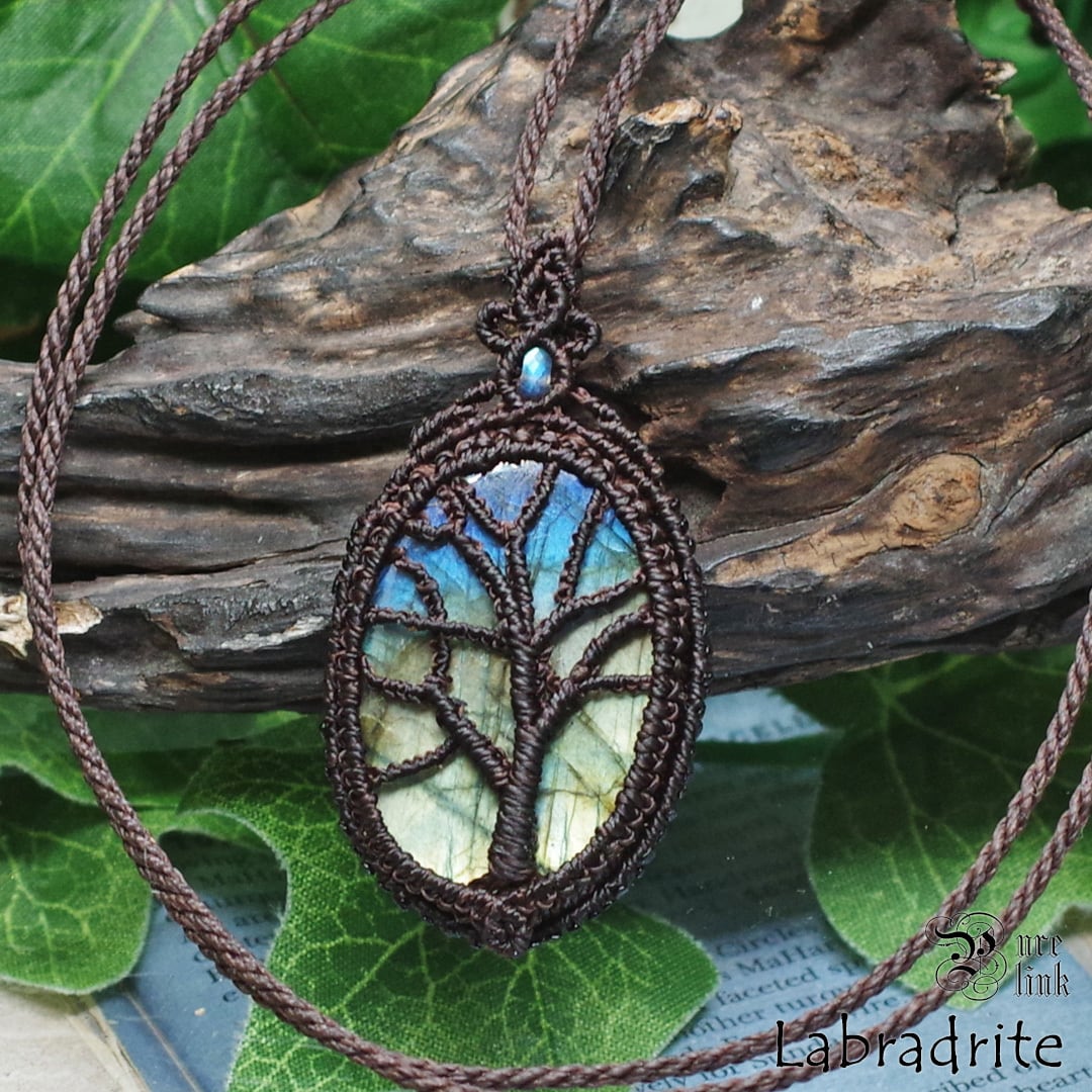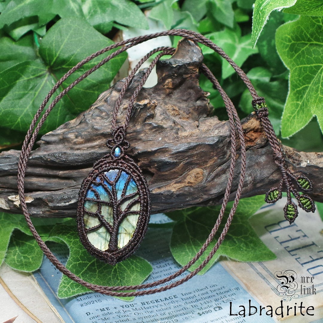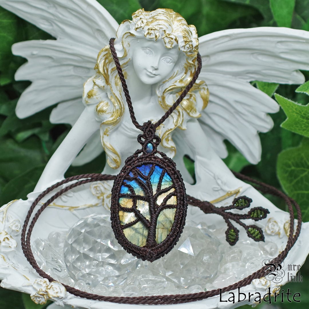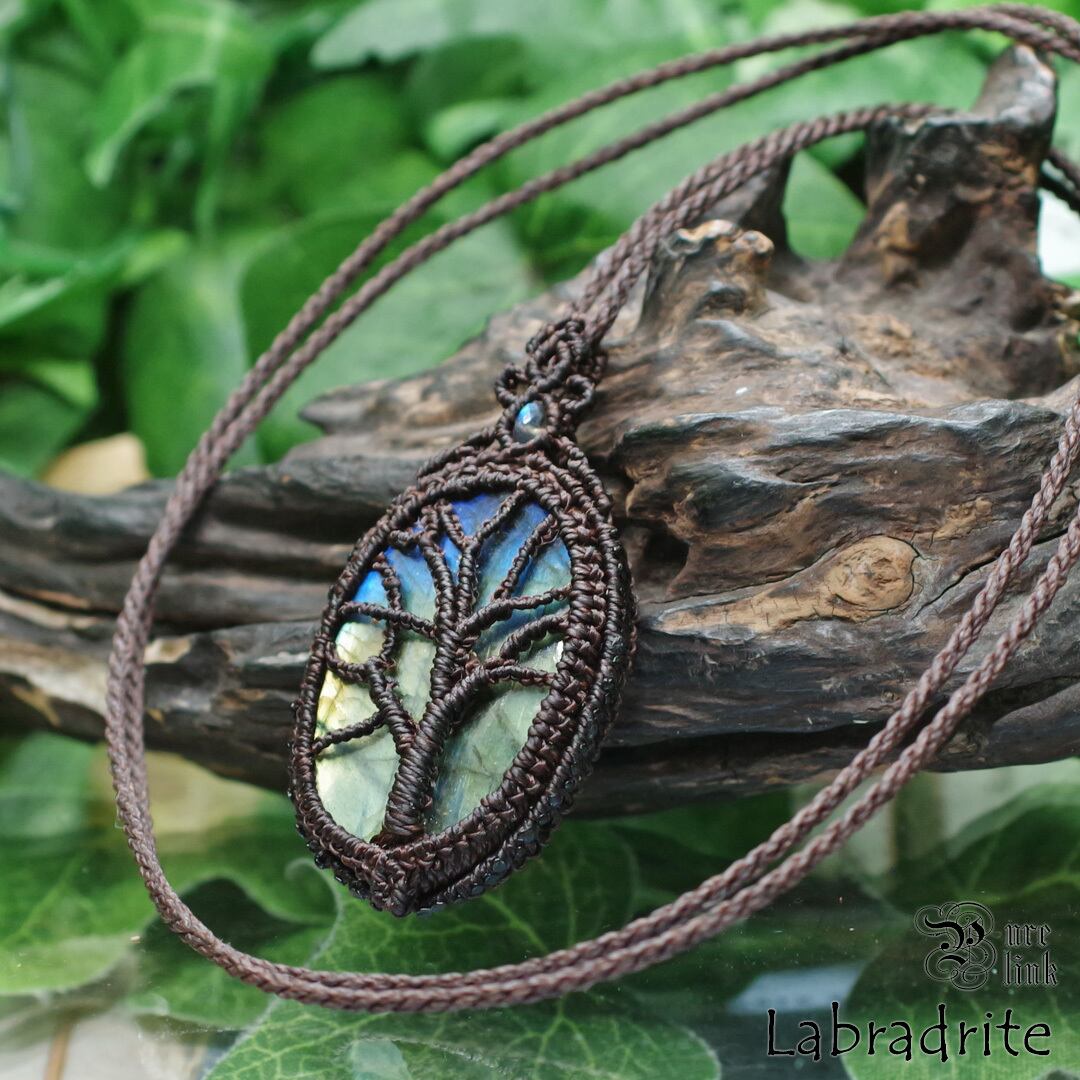 『ラブラドライト』生命の樹マクラメ編トップネックレス
