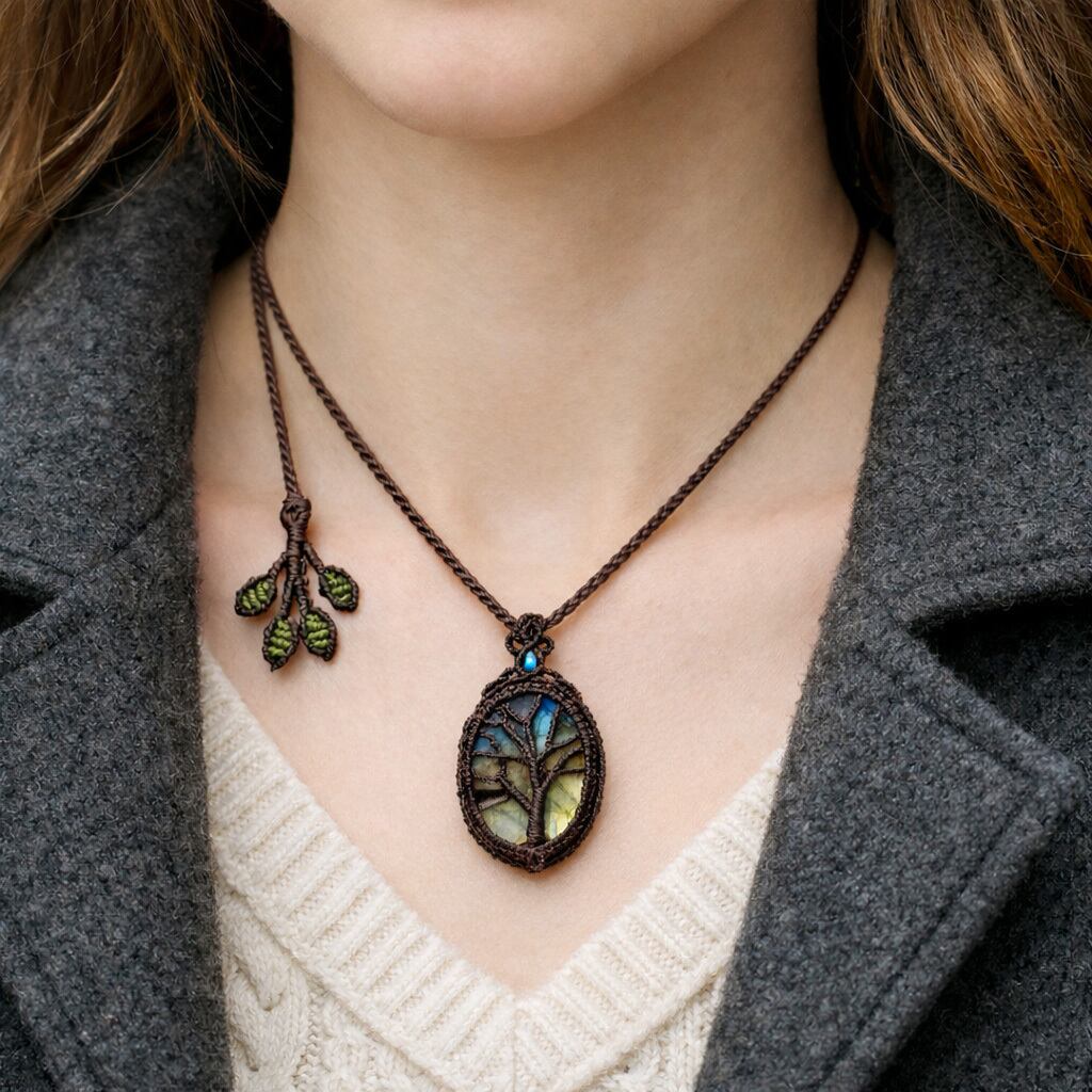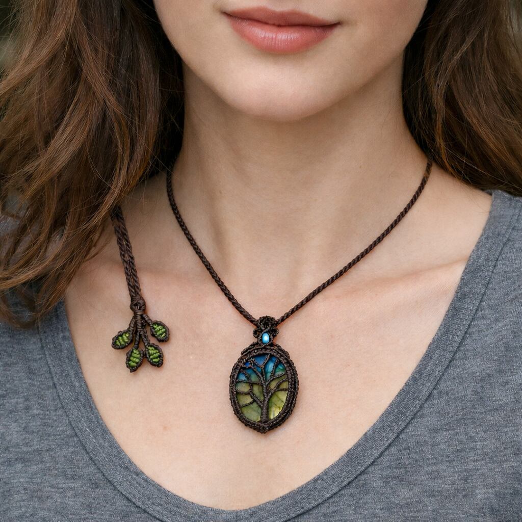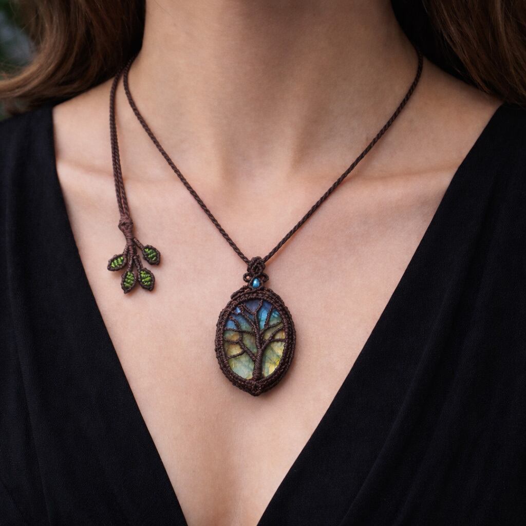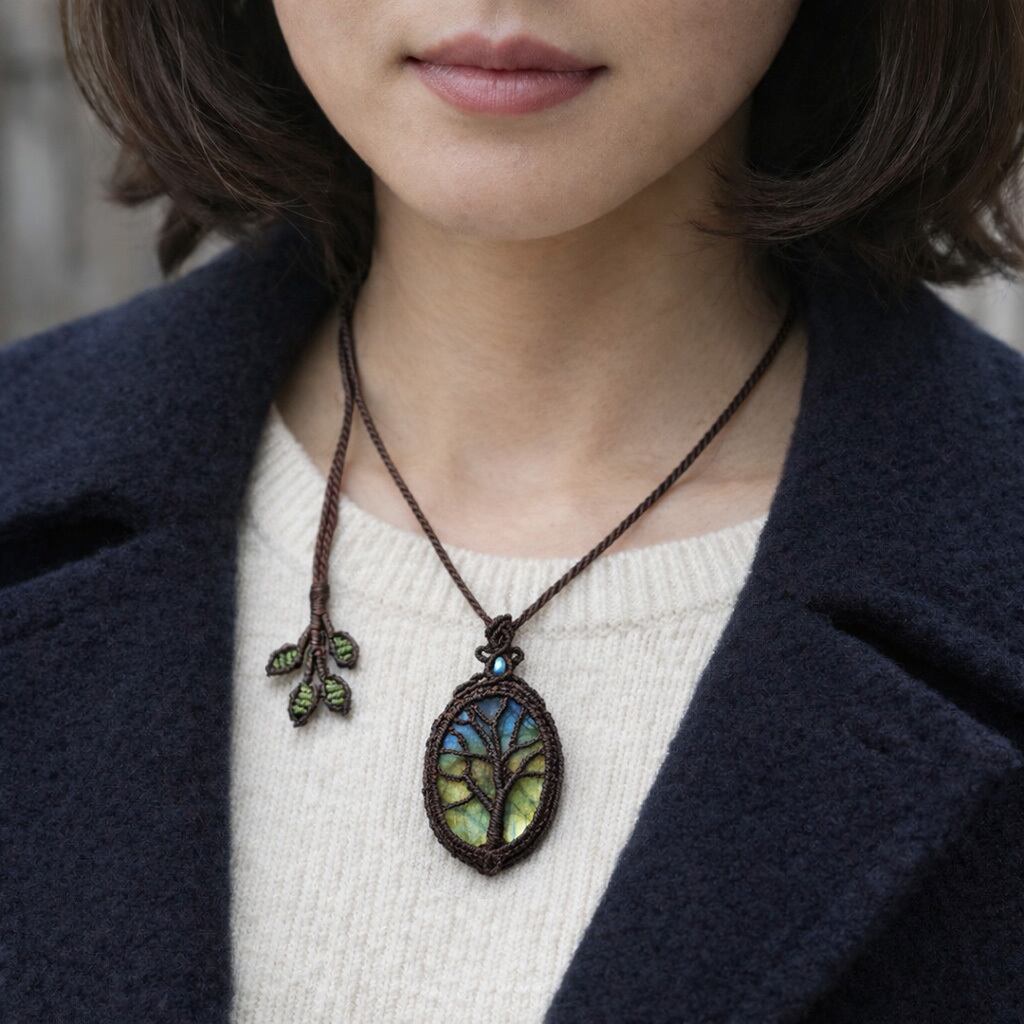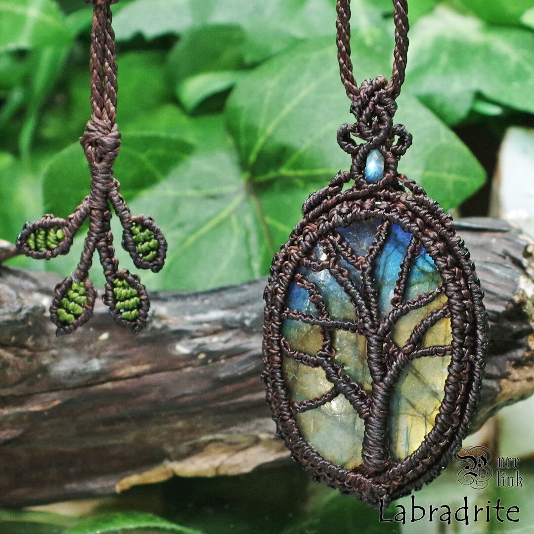 『ラブラドライト』生命の樹マクラメ編トップネックレス