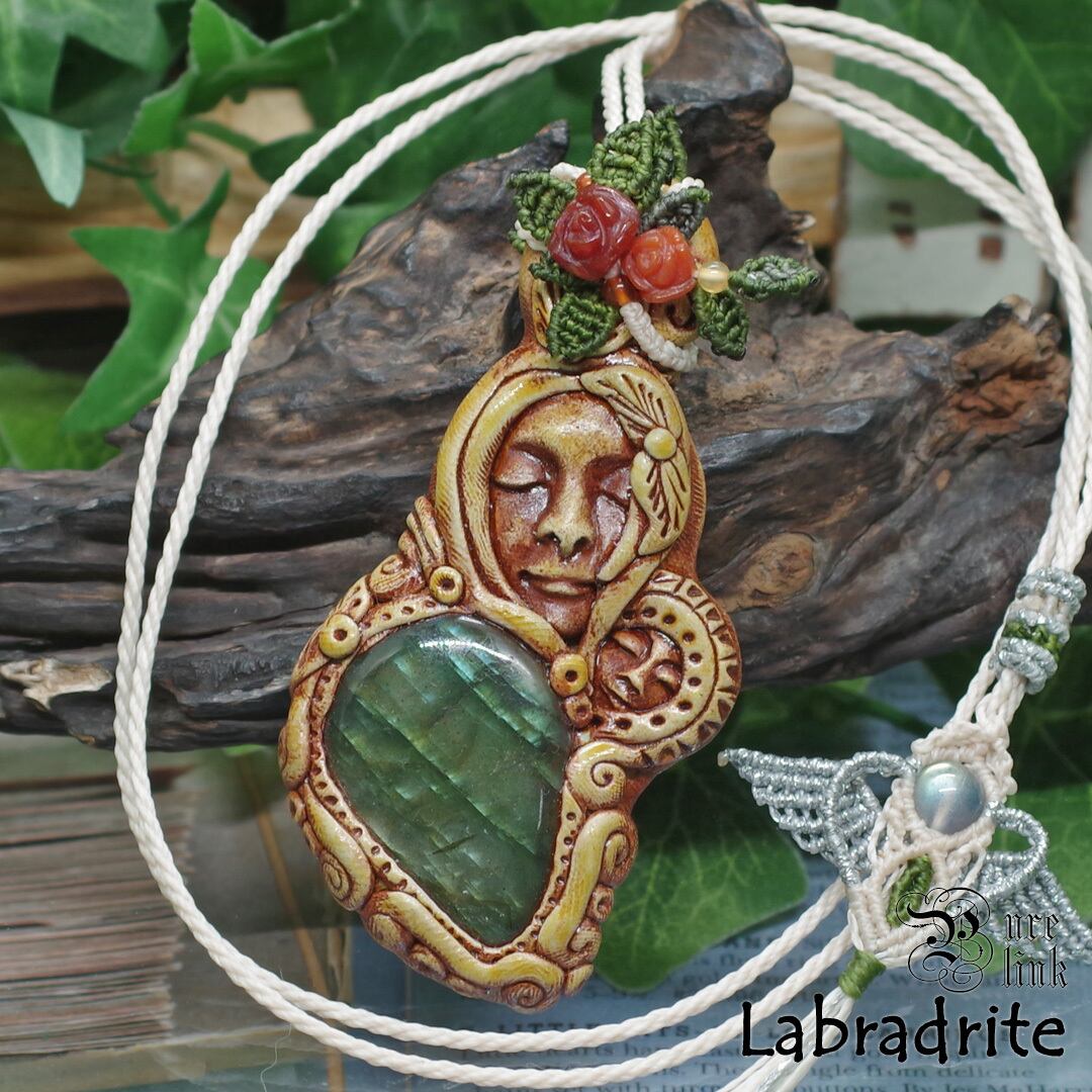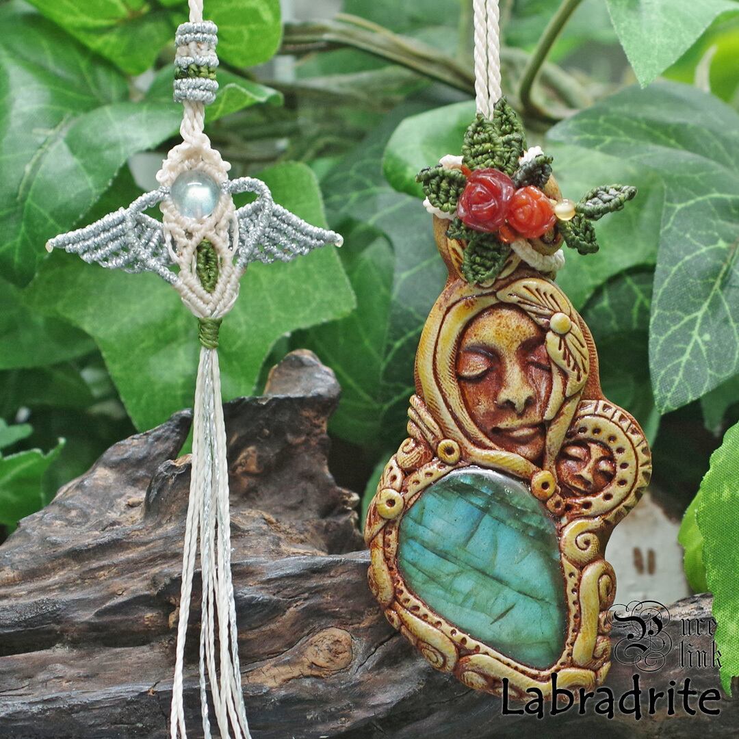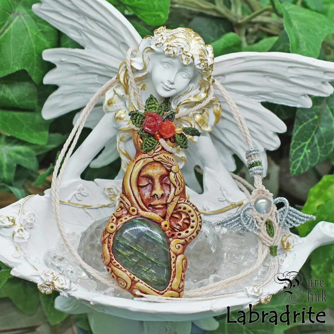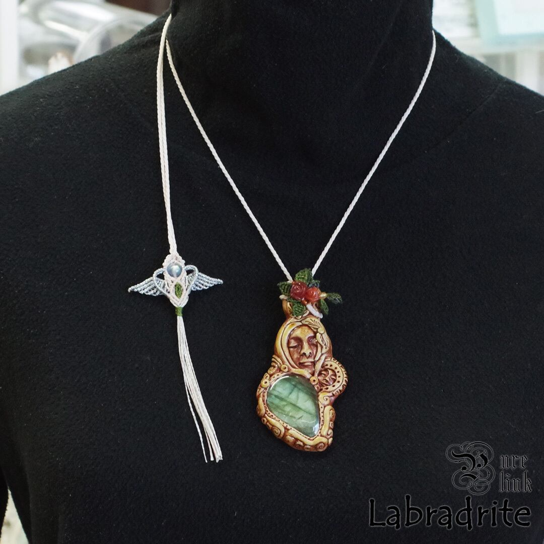 『ラブラドライト』『聖母マリア』クレイアートマクラメ編トップネックレス