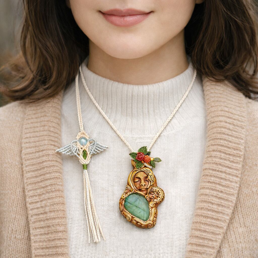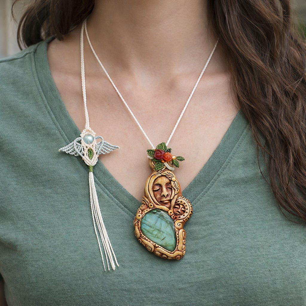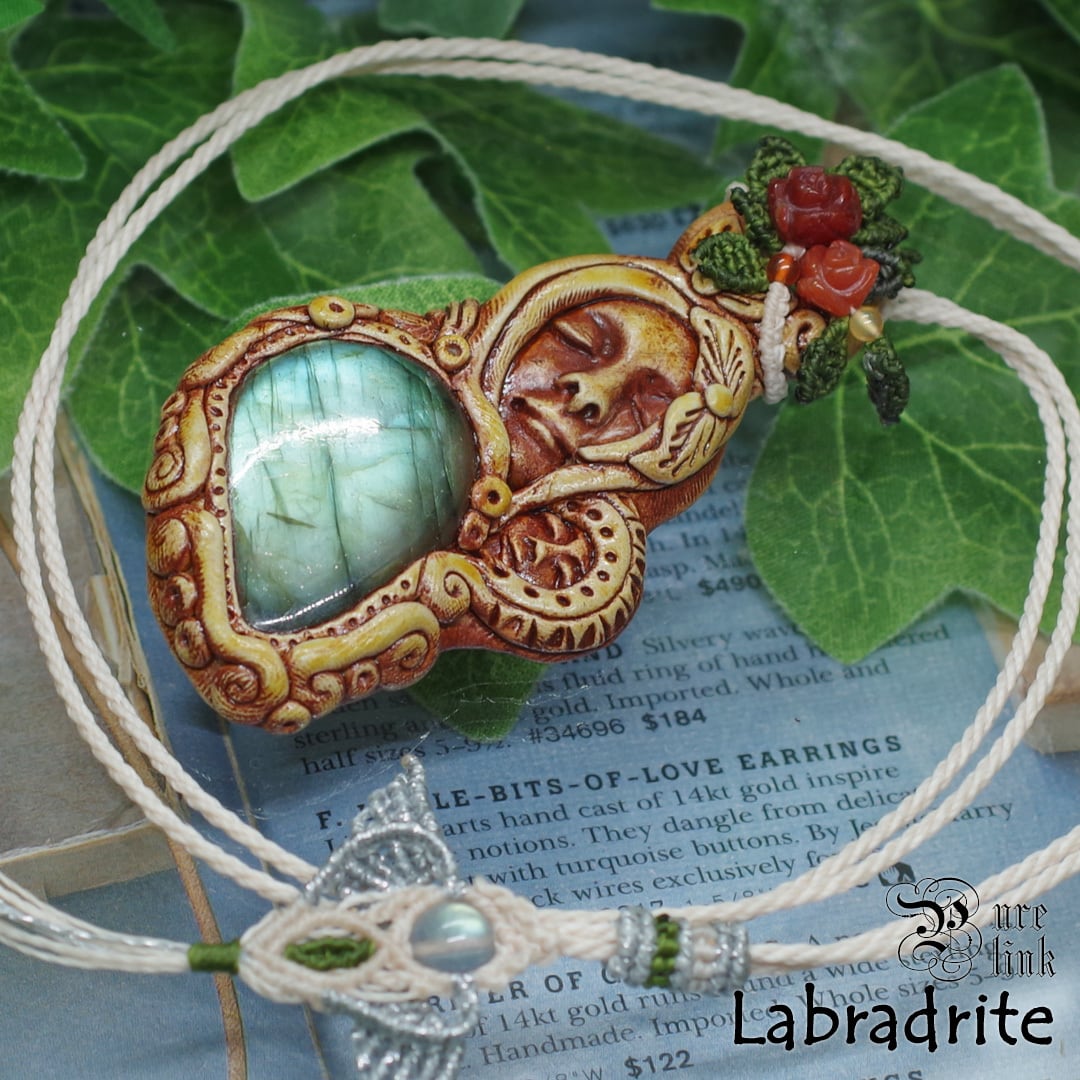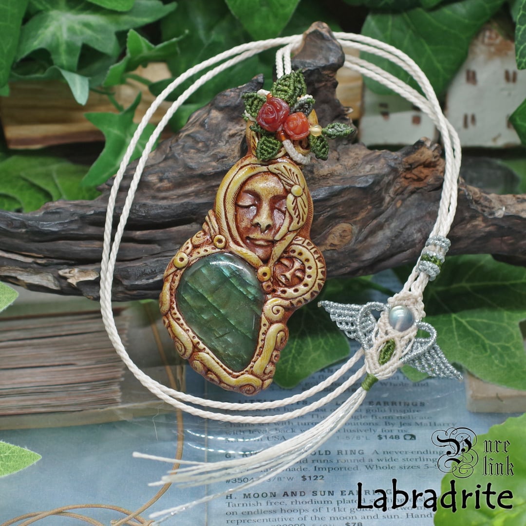 『ラブラドライト』『聖母マリア』クレイアートマクラメ編トップネックレス