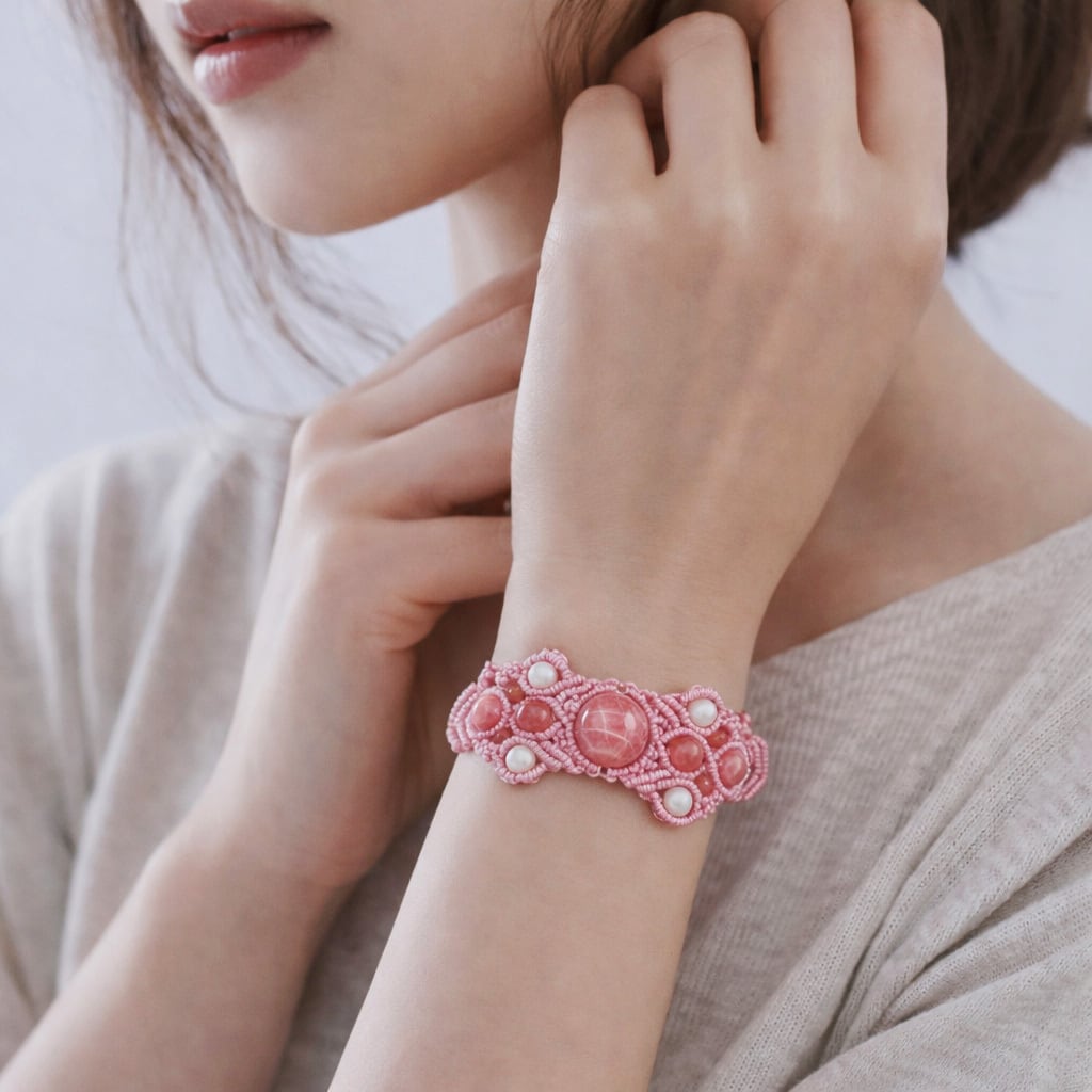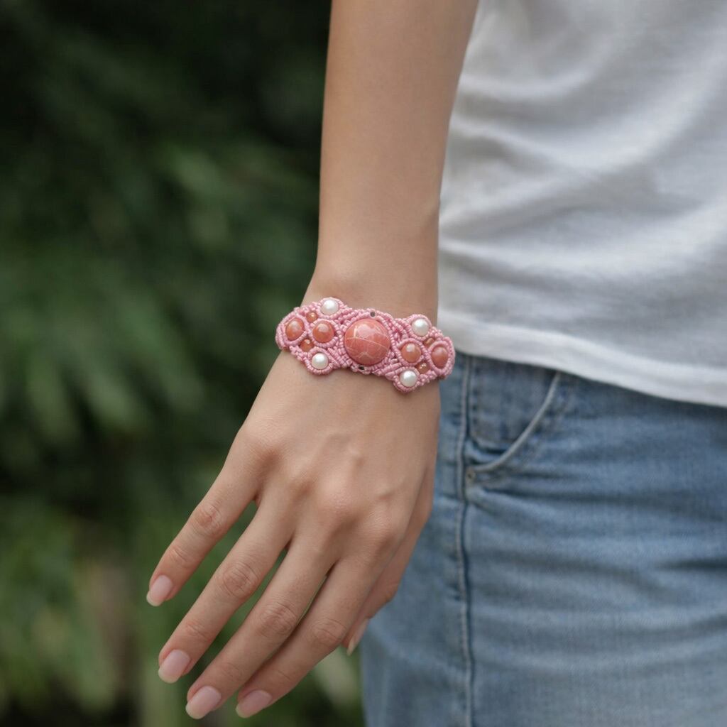 愛を象徴するふたつの石を組み合わせ、丁寧にマクラメ編みで仕立てたブレスレットです。