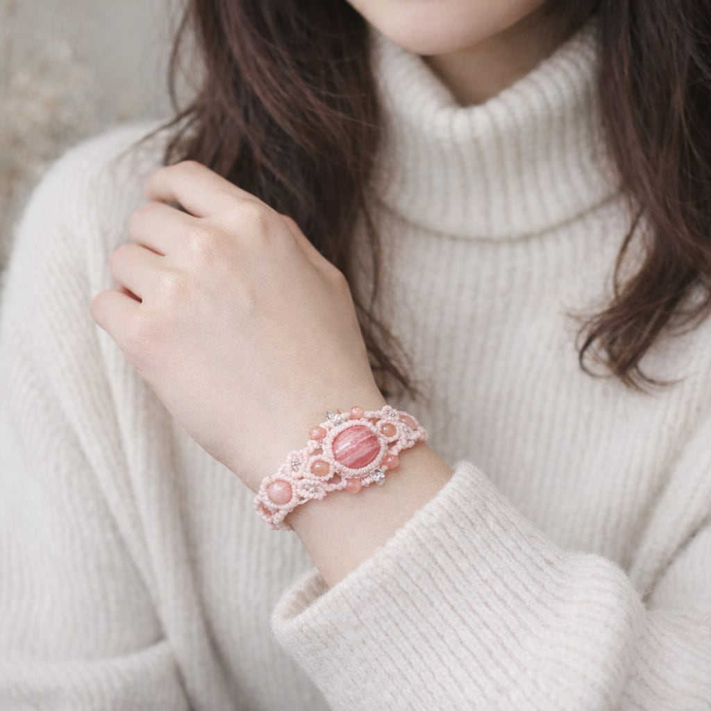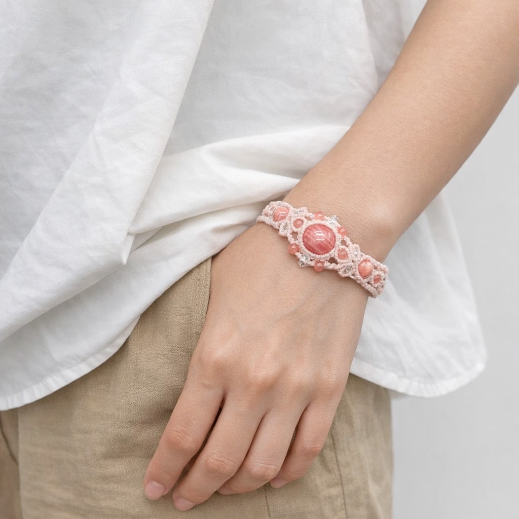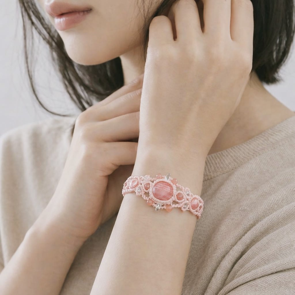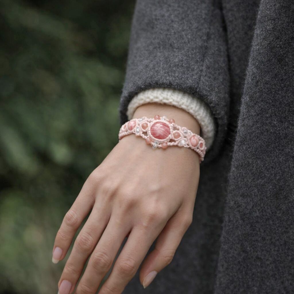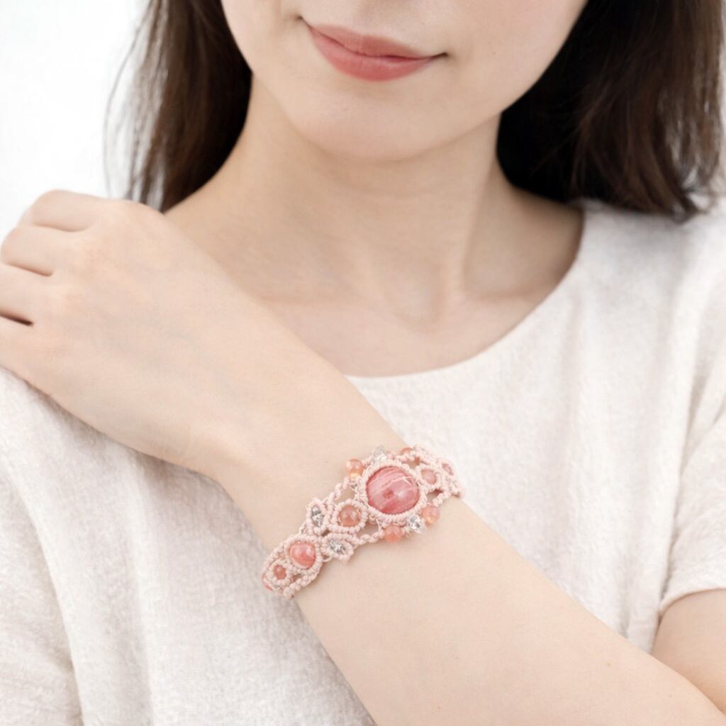 情熱の魔石『ロードクロサイト/インカローズ』マクラメ編ブレスレット2