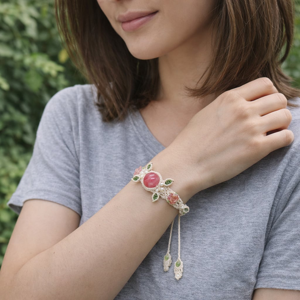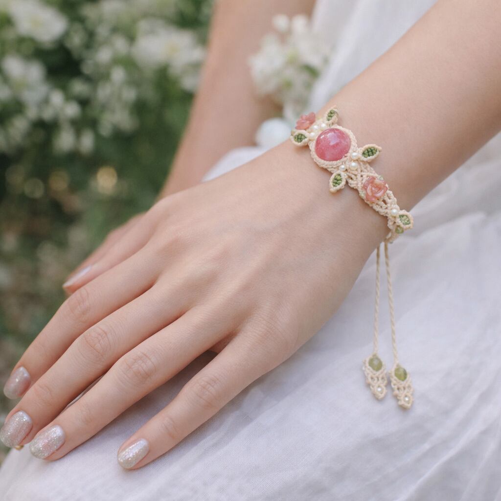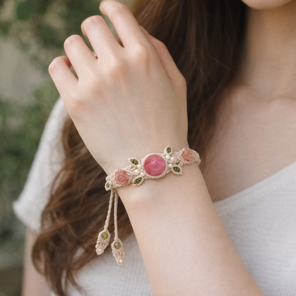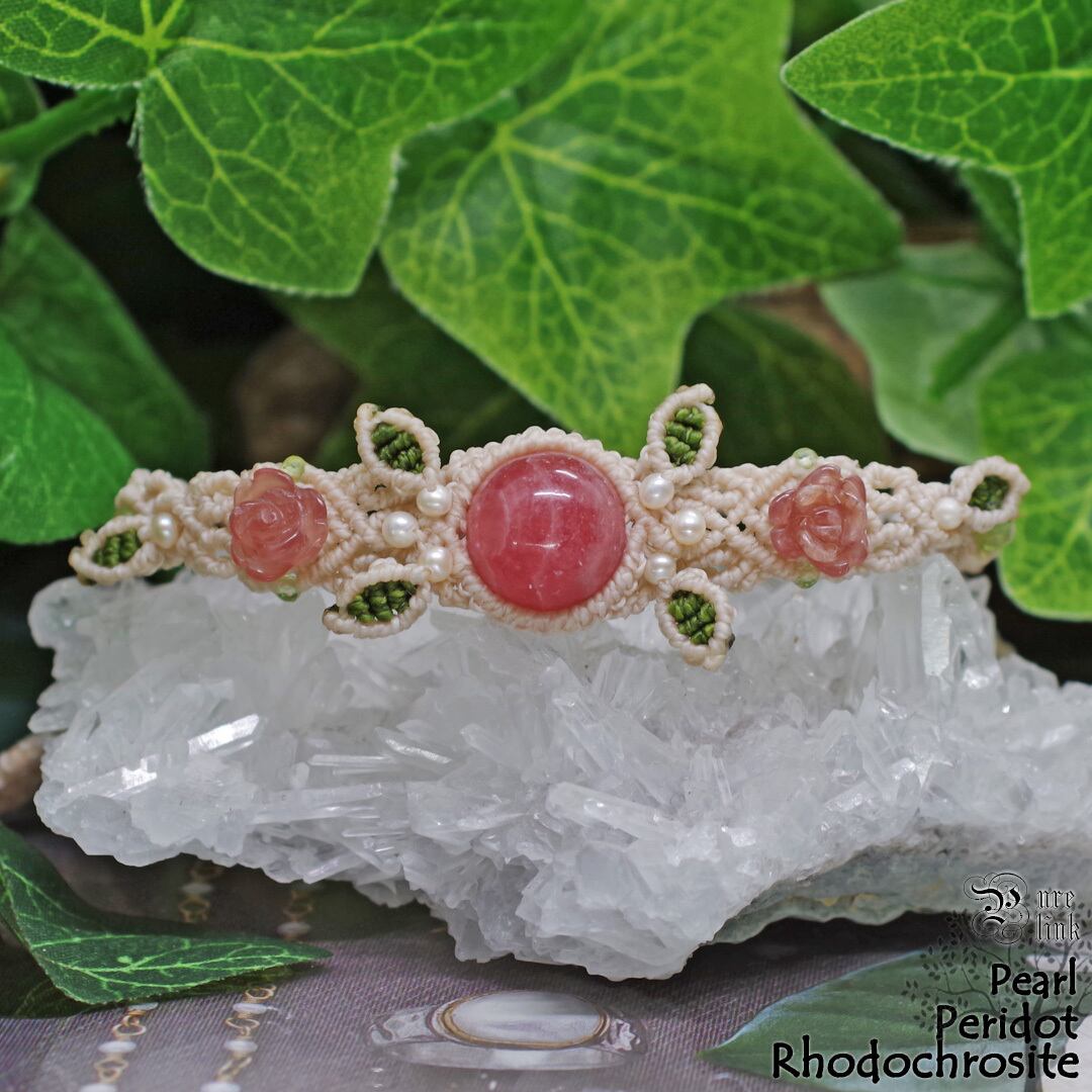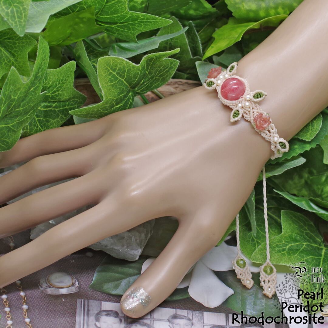 薔薇彫『ロードクロサイト』『パール』生命の樹マクラメ編ブレスレット