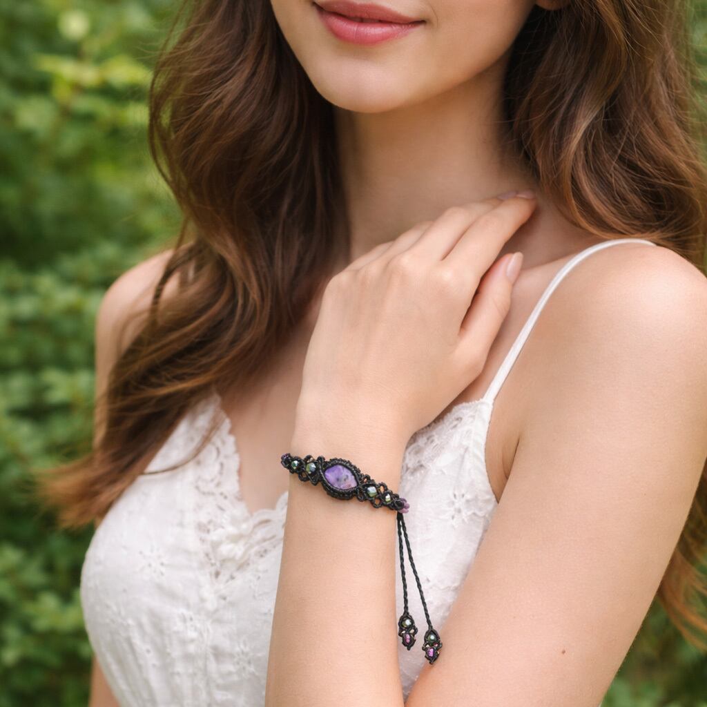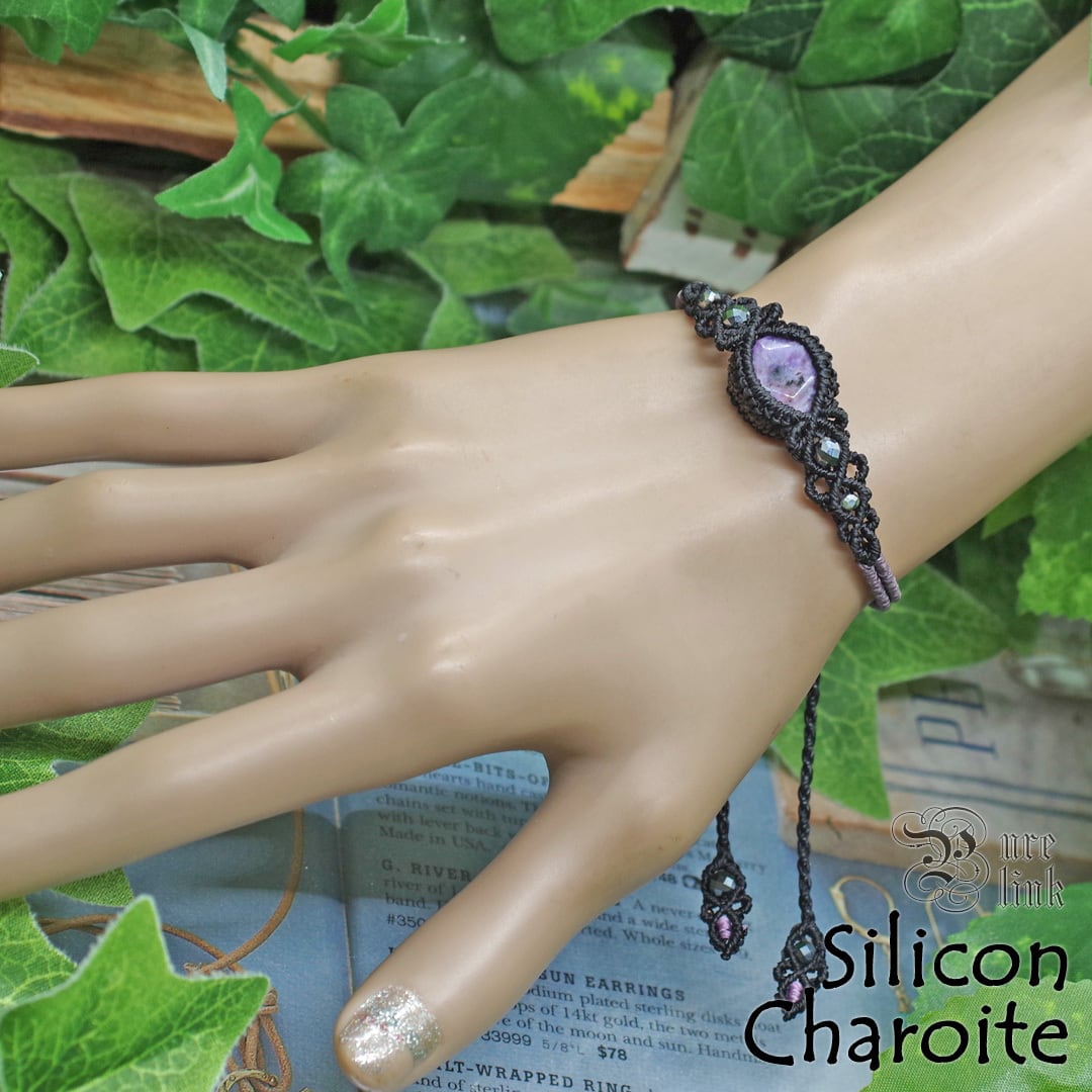 魅惑する癒しの紫魔石『チャロアイト』マクラメ編みブレス