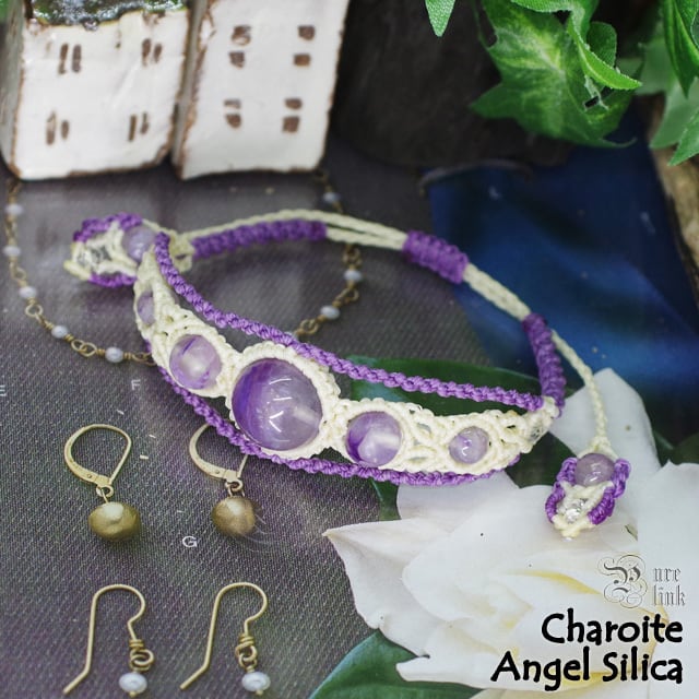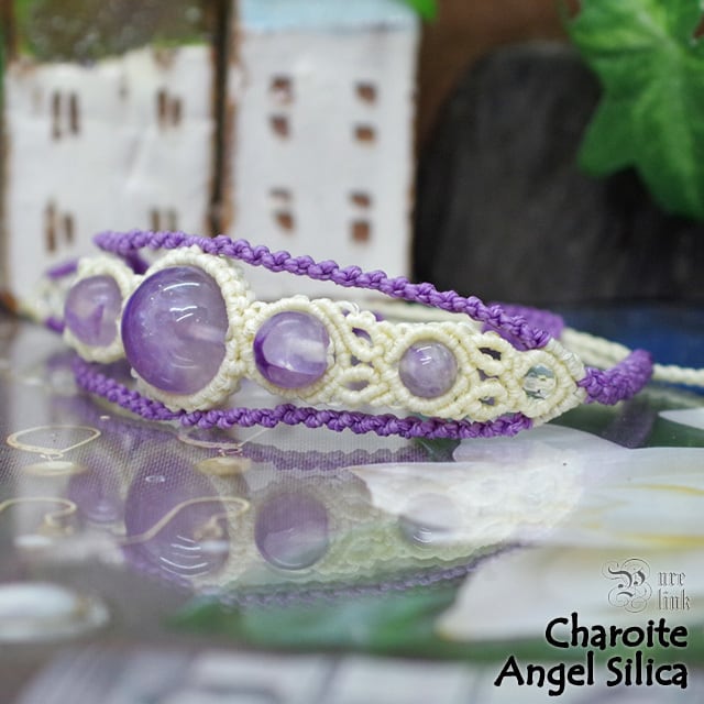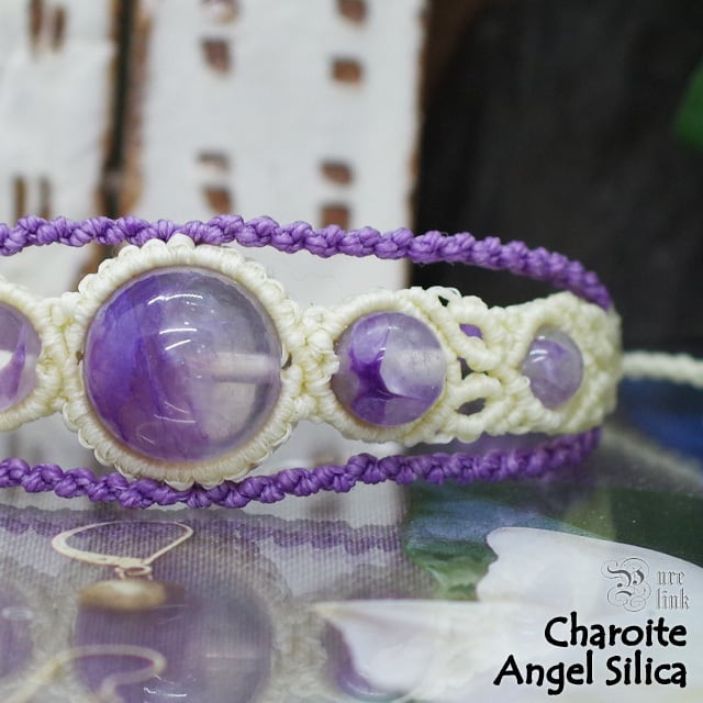 天使の水晶『エンジェルシリカ/チャロアイト』マクラメ編みブレスレット《天然石アクセサリー》