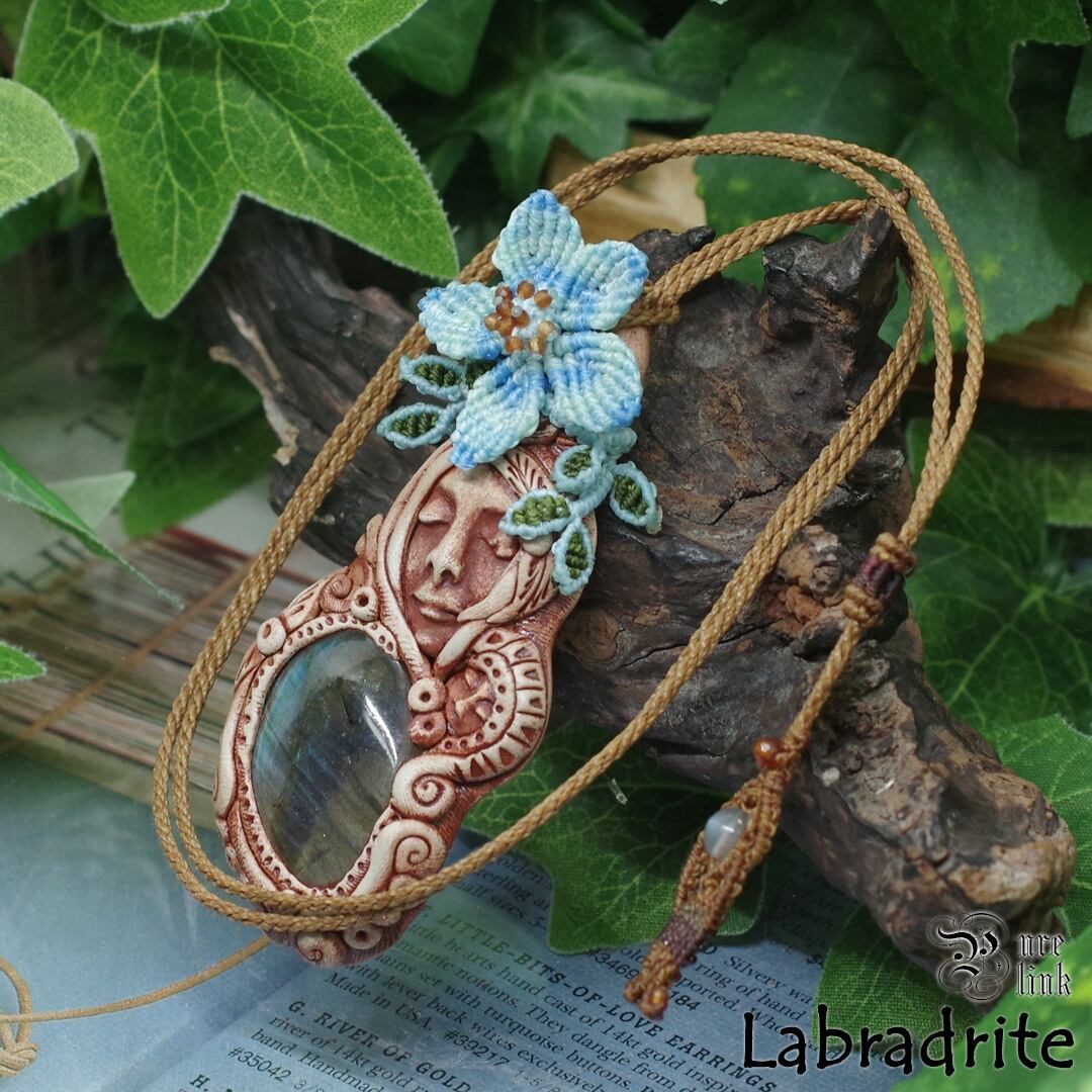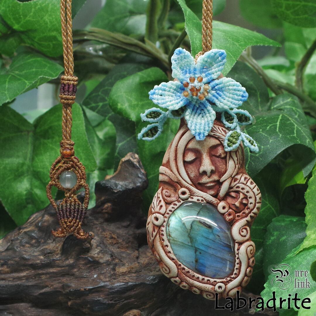 『ラブラドライト』『聖母マリア』クレイアートマクラメ編トップネックレス