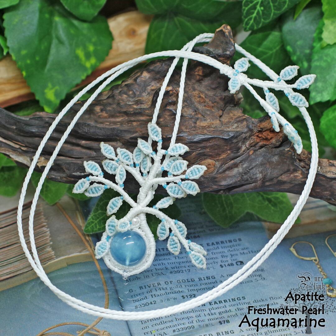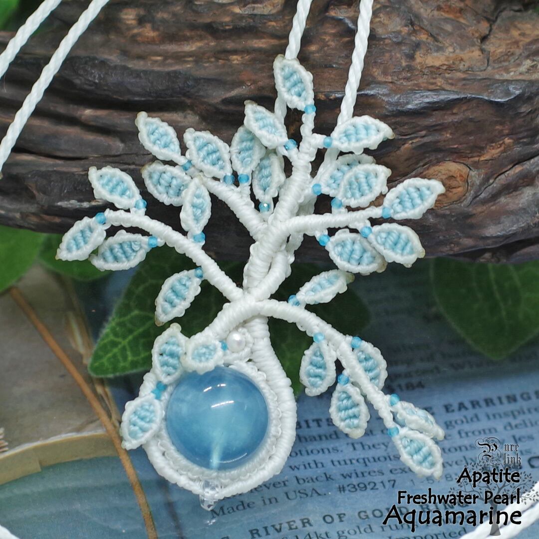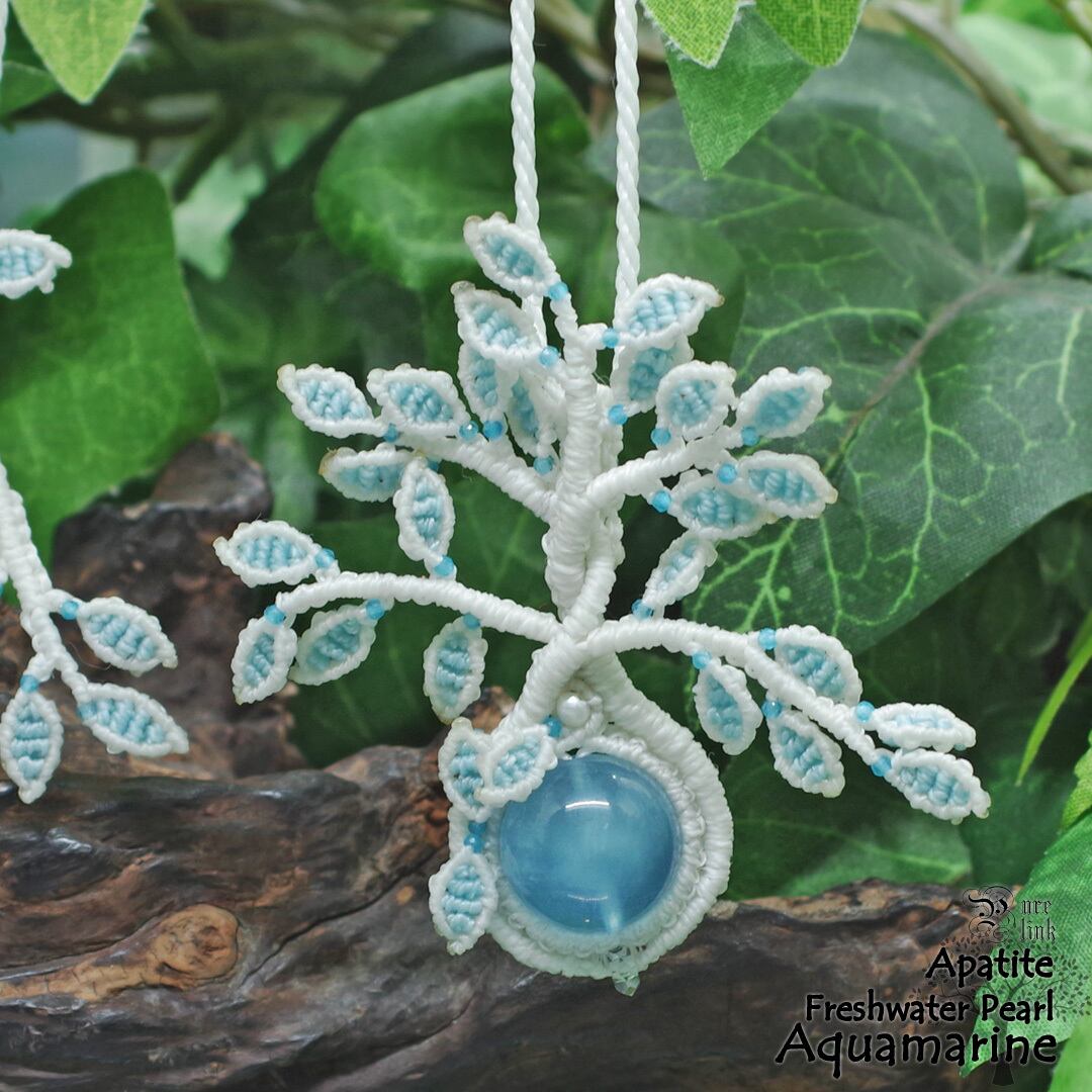 海を象徴する魔石『アクアマリン』『パール』『アパタイト』生命の樹マクラメ編トップネックレス