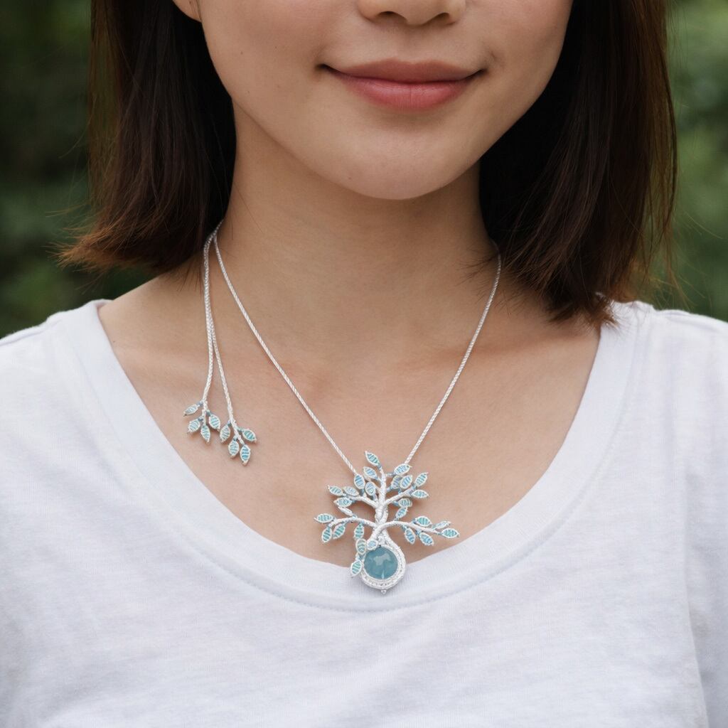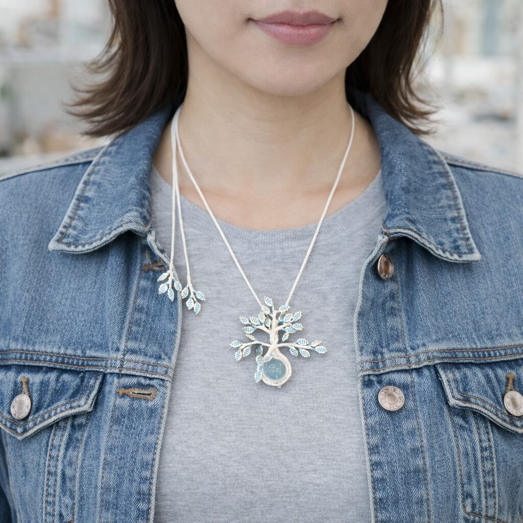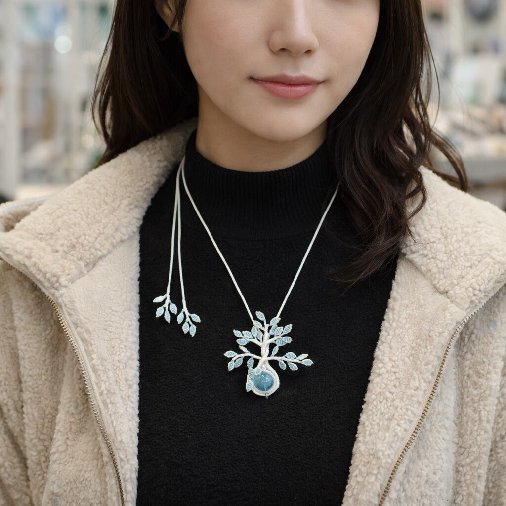 海を象徴する魔石『アクアマリン』『パール』『アパタイト』生命の樹マクラメ編トップネックレス