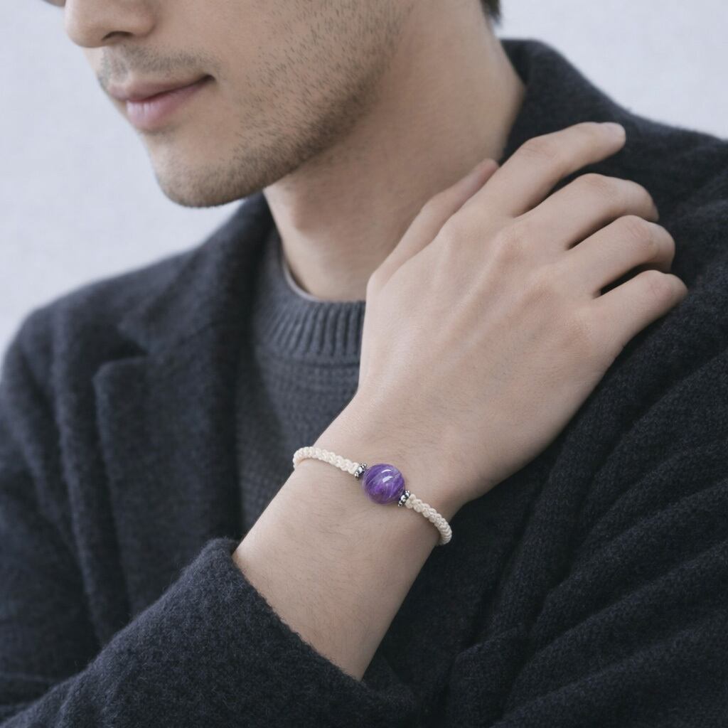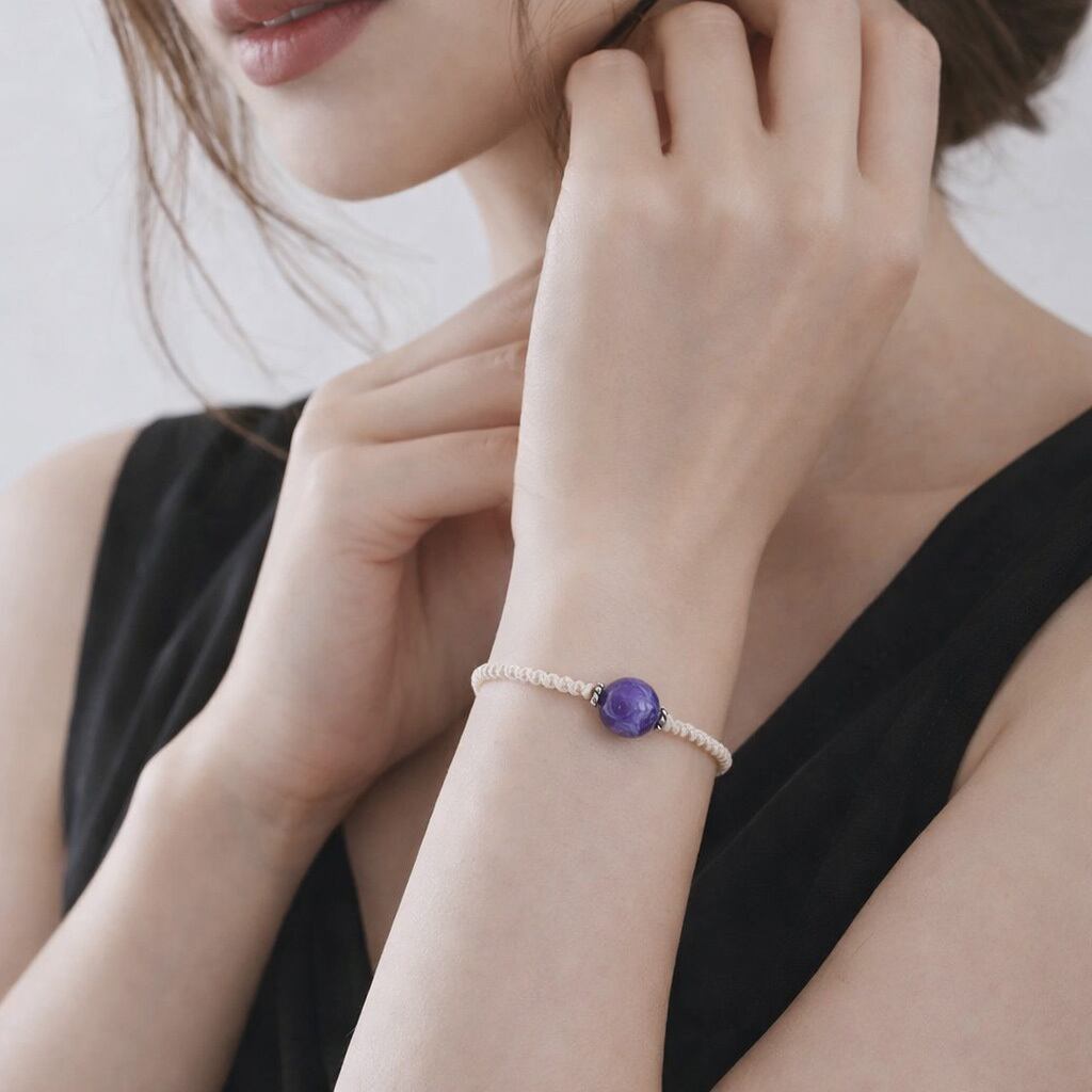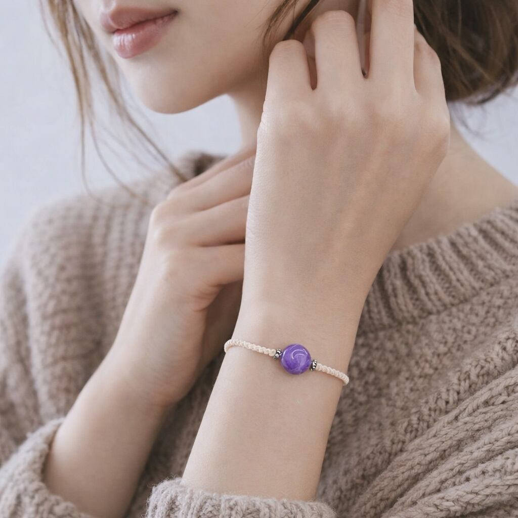 と…そんな美しい濃い紫色の高品質の『チャロアイト』魔を払う聖なる金属『シルバー925』製ビーズや『水晶』ボタンカットも使用し、見た目だけでなく、頼もしいお守りにもなるように、願いを込め丁寧に編んで作成した当ショップオリジナルのハンドメイドマクラメ編ブレスレットです。