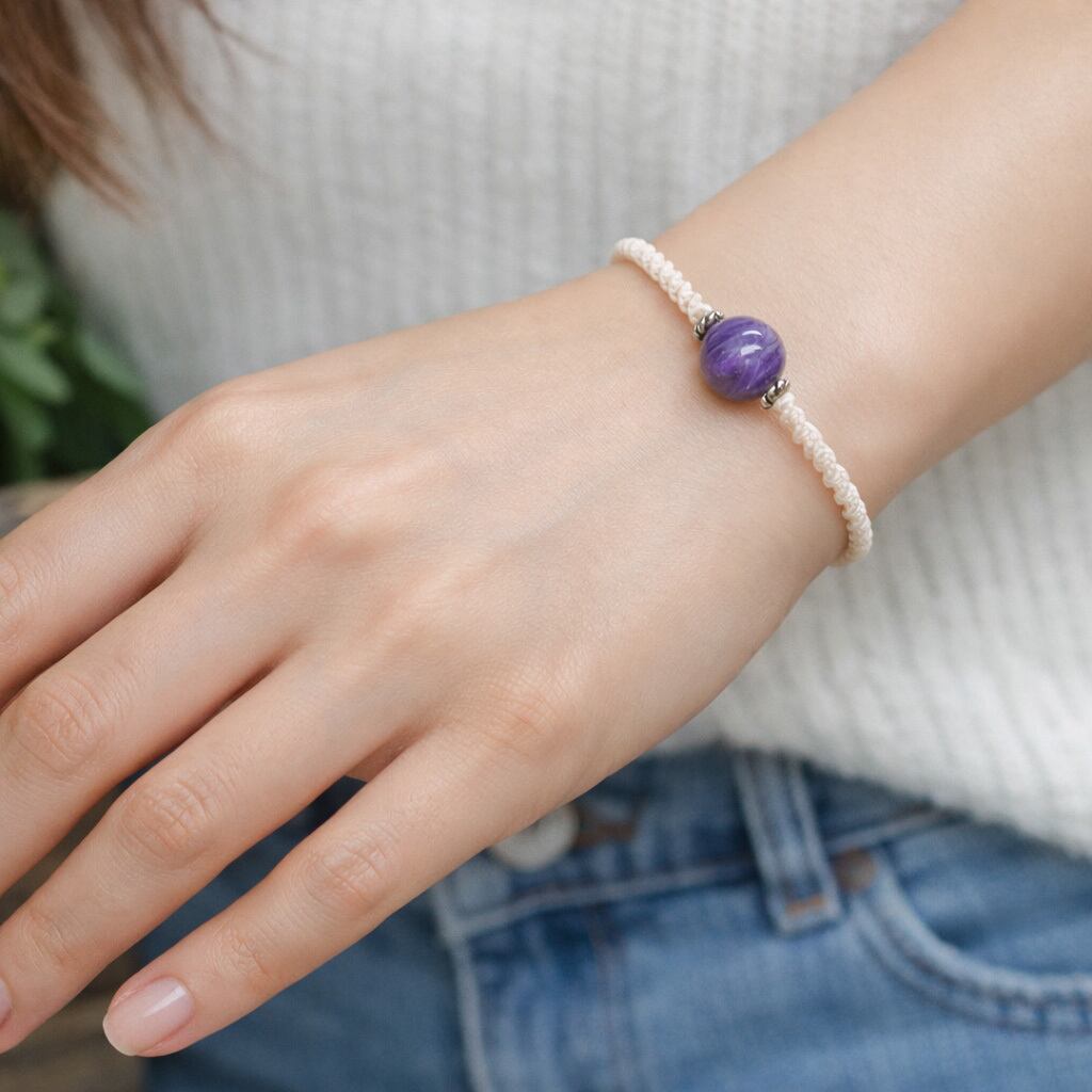 『チャロアイト』シルバー925マクラメ編みブレスレット