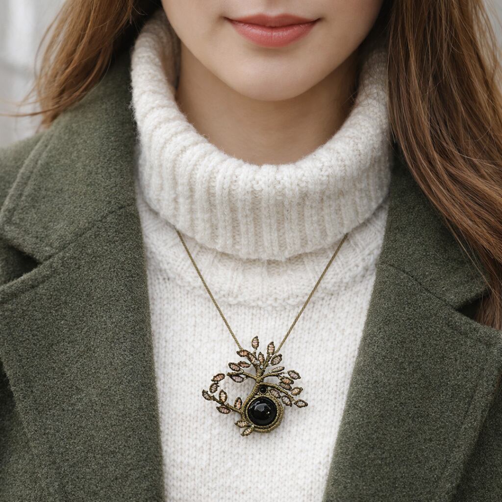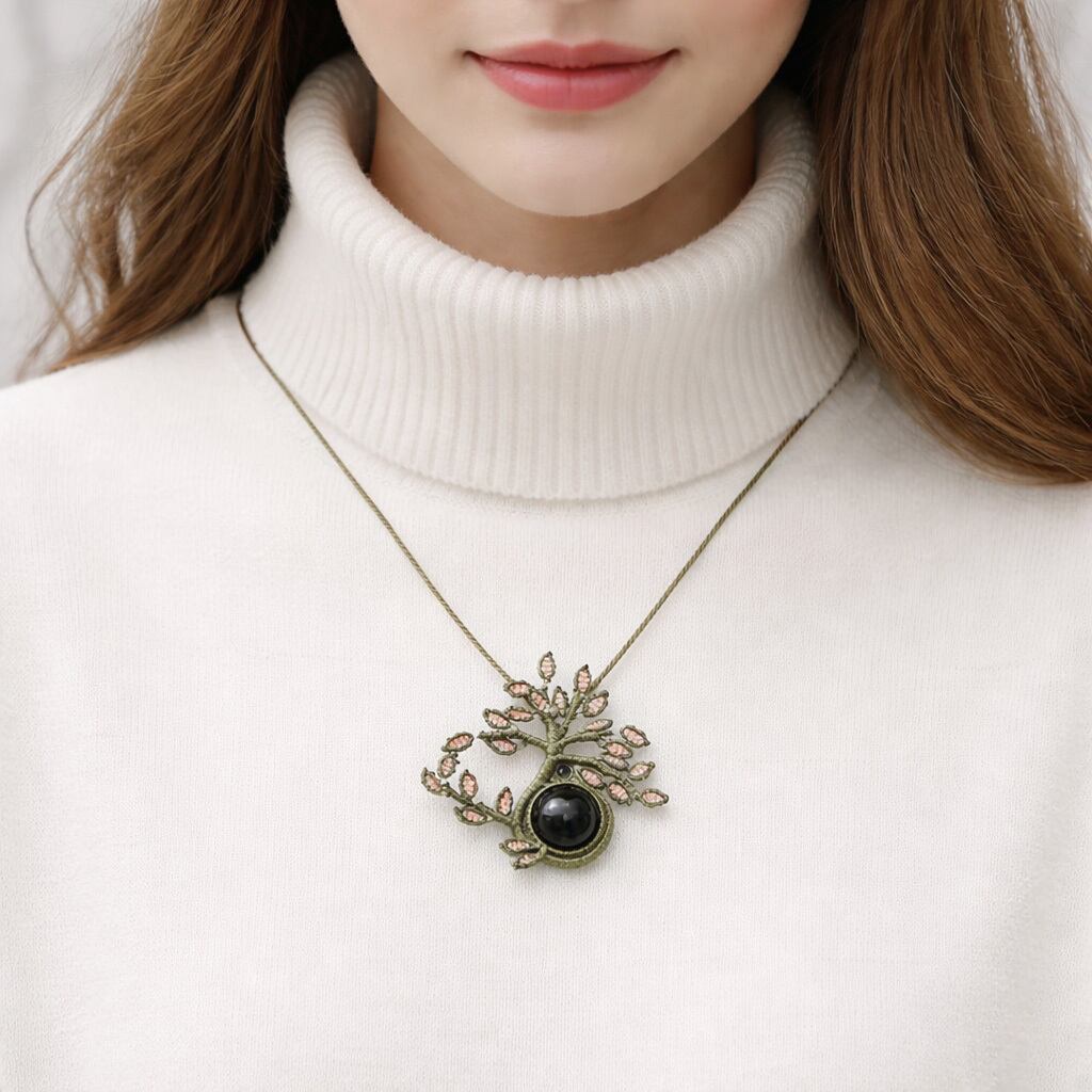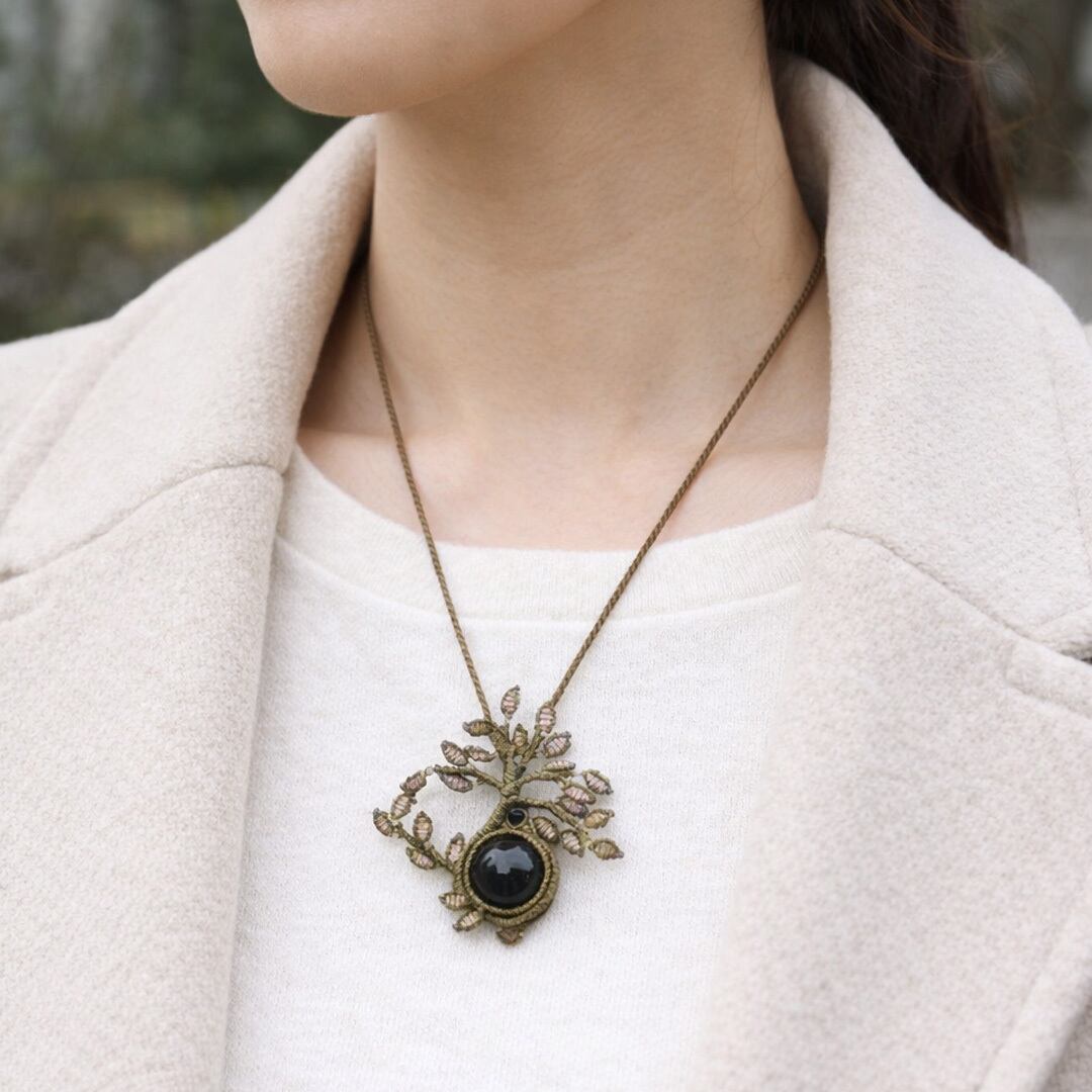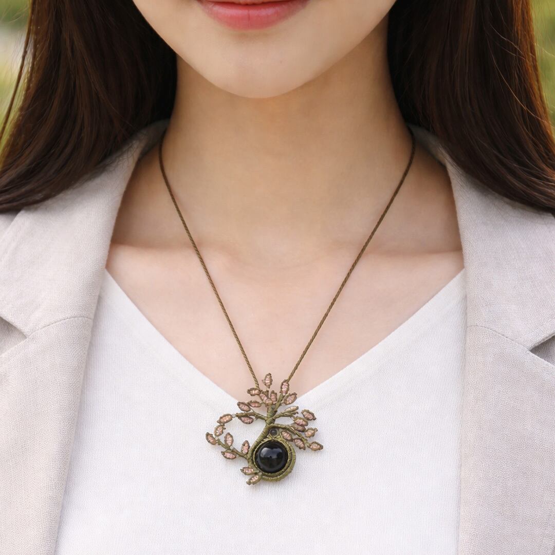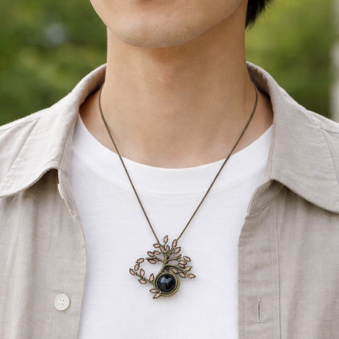 邪気を払う黒水晶『モリオン』生命の樹マクラメ編みネックレス