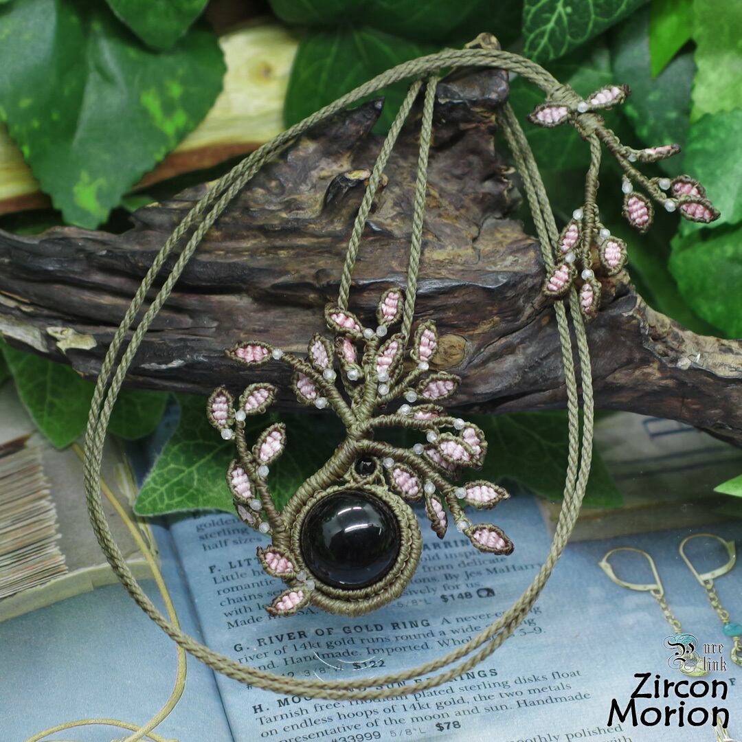 そして、そんな『モリオン』と美しい黒石でキラキラと輝く『ブラックスピネル』や希少な『ジルコン』も使用して、旧約聖書の創世記にも記載のある、エデンの園の中央に植えられた木『Tree of Life/生命の樹』をモチーフにしてマクラメ編みで作成してみました。