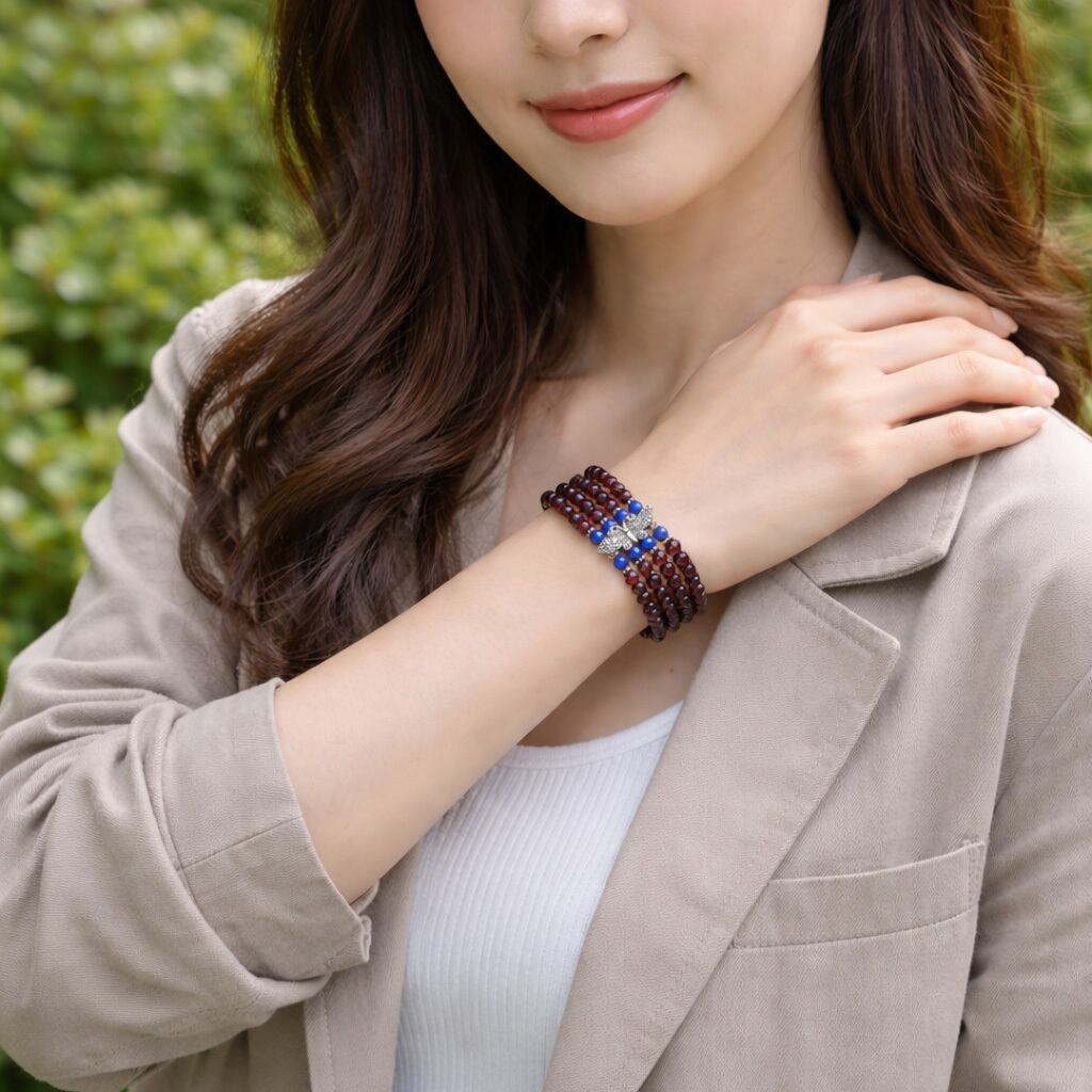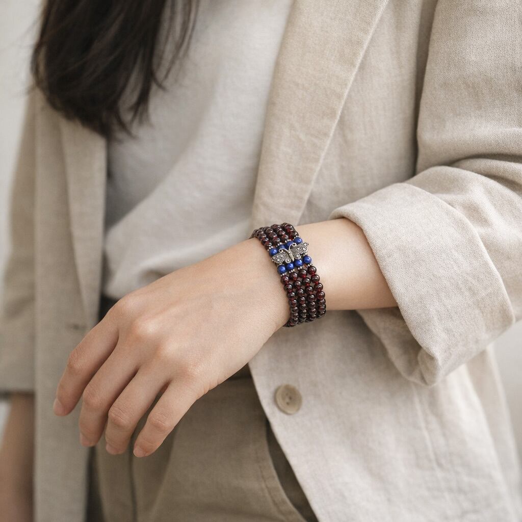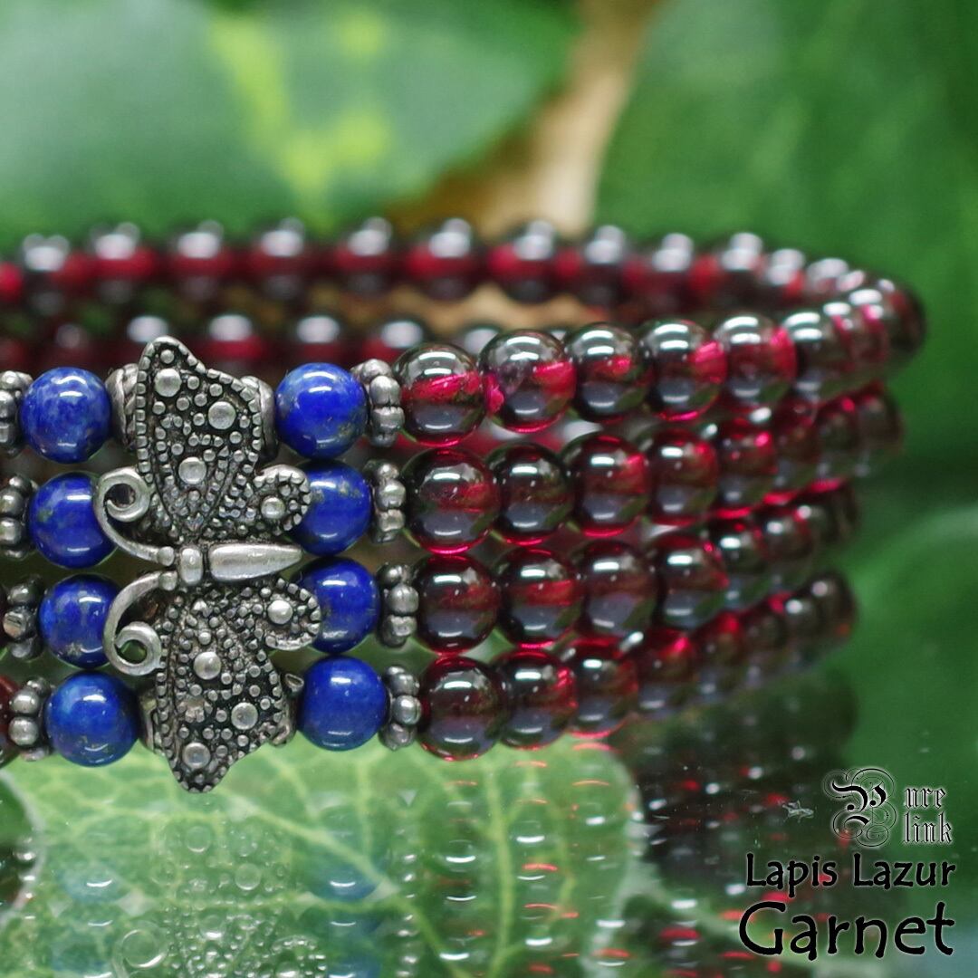 ガーネット&ラピスラズリ バタフライ 4連ブレスレット