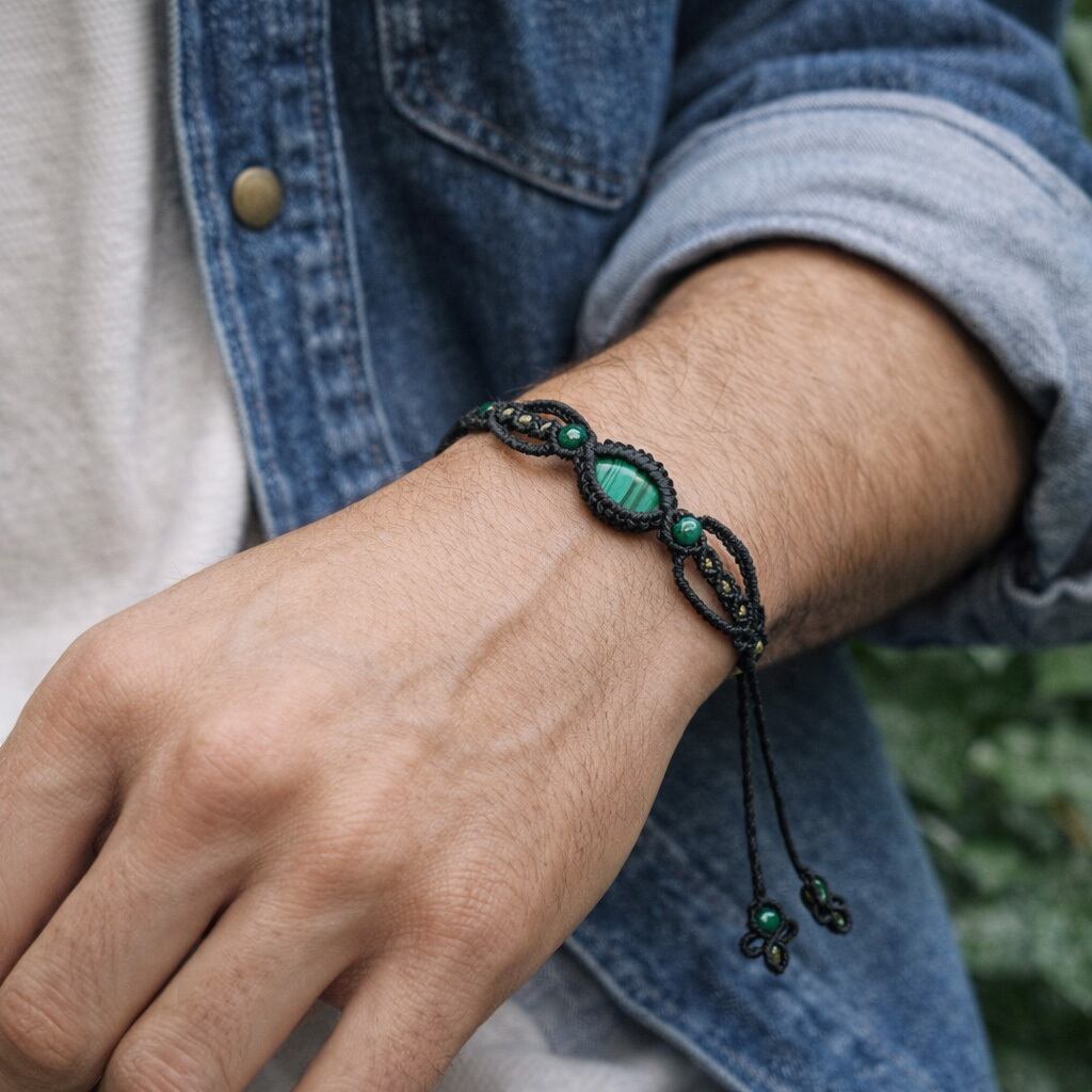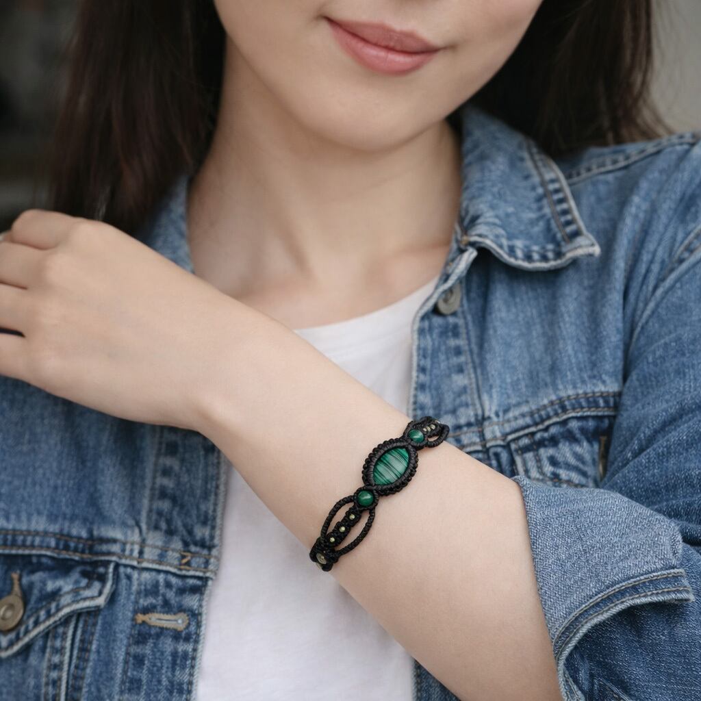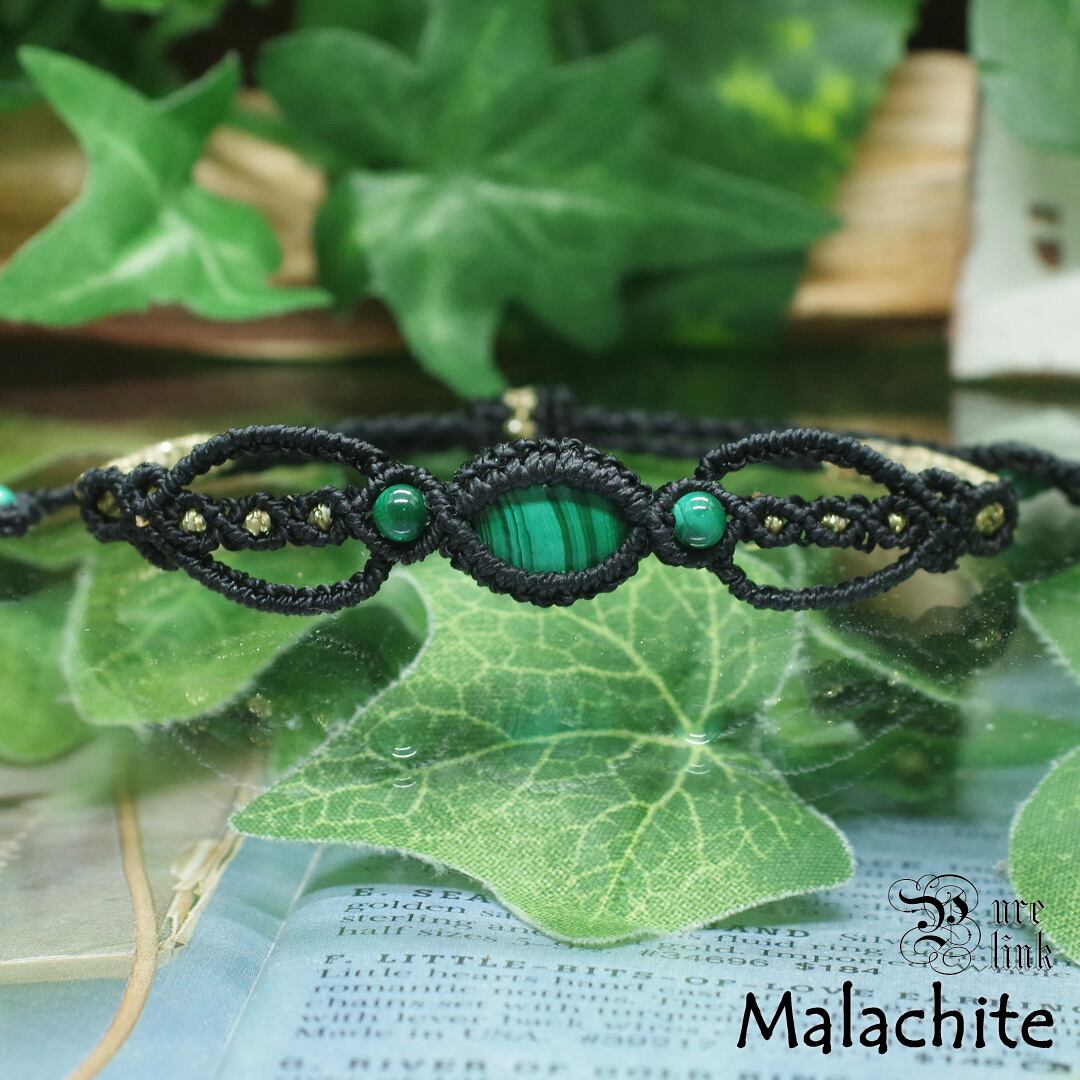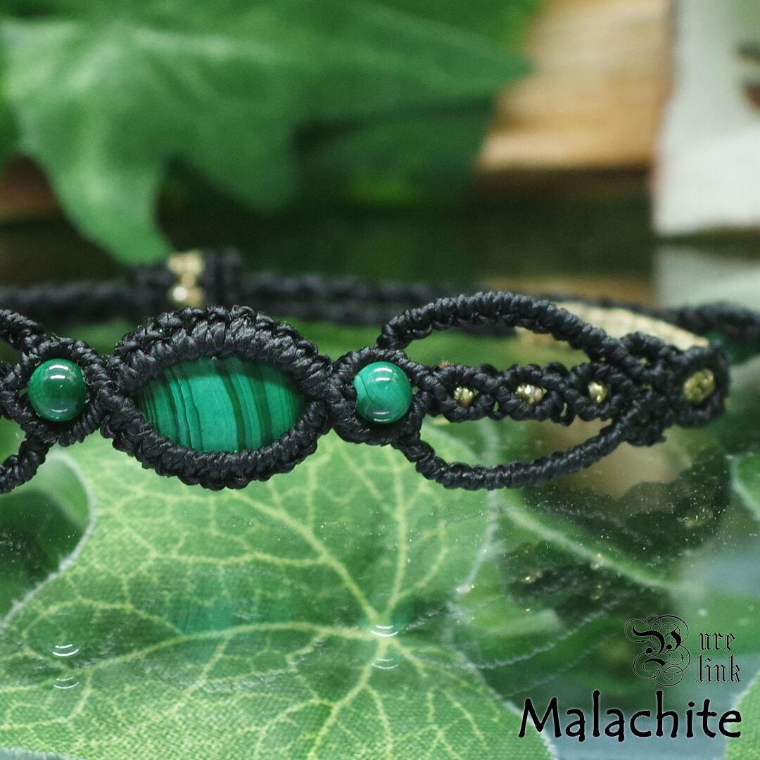 孔雀石『マラカイト』マクラメ編ブレスレット
