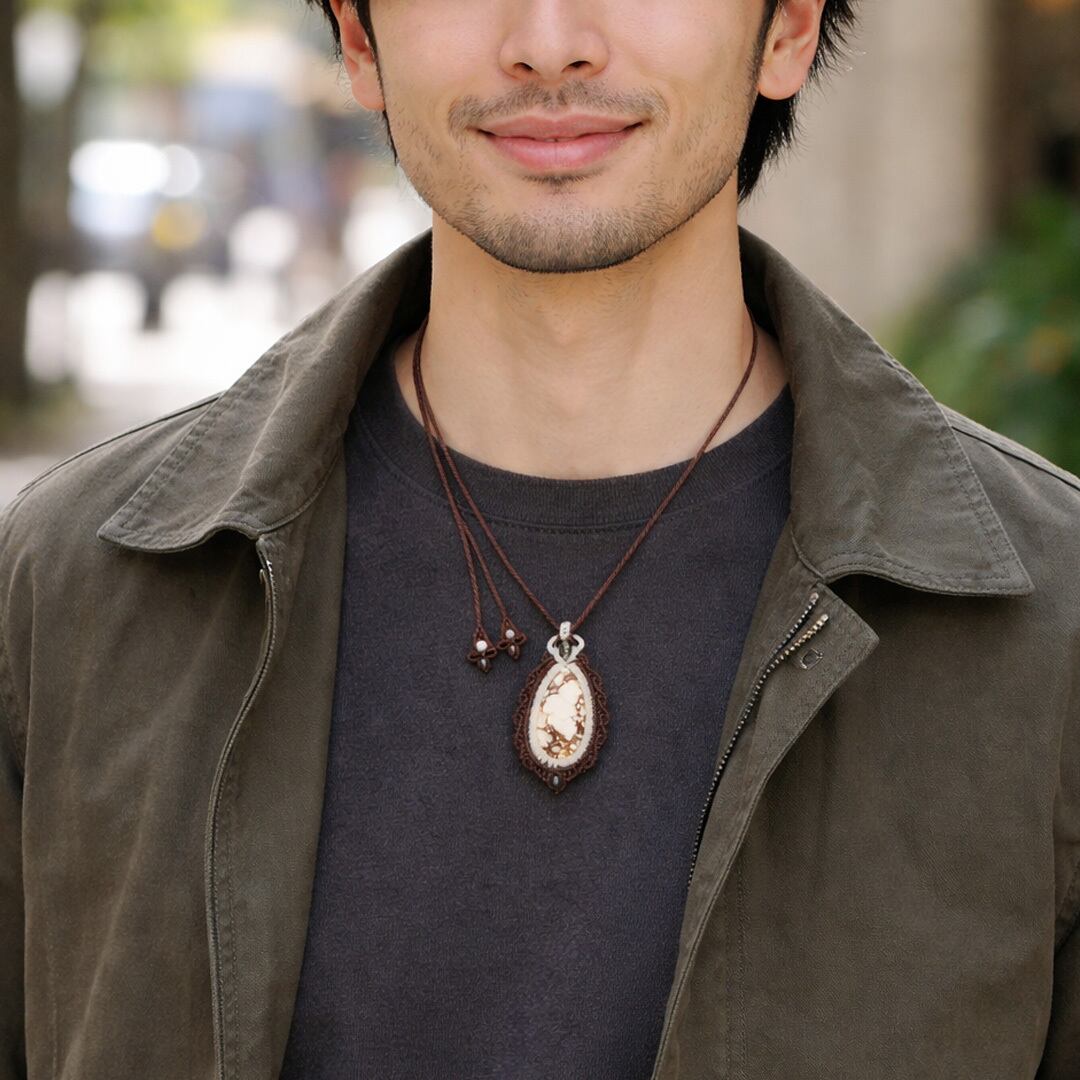 『ワイルドホースマグネサイト』マクラメ編みネックレス