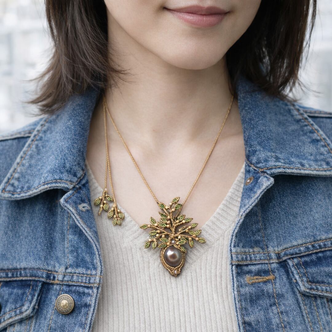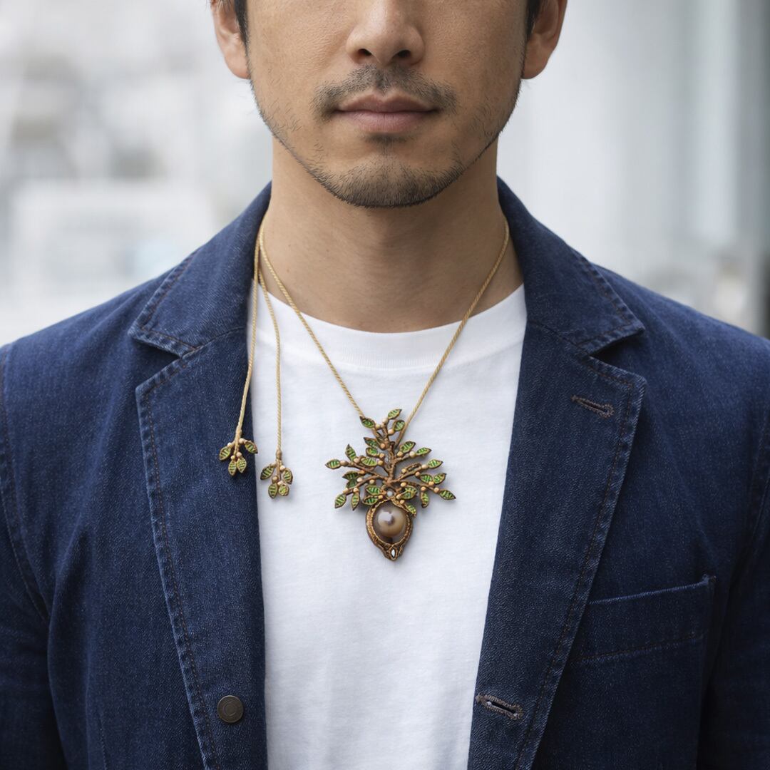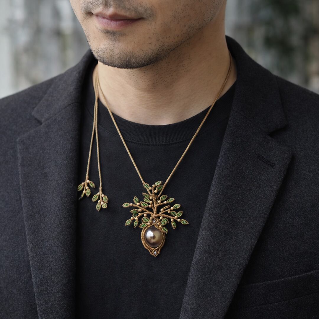さらに、清らかさの象徴とされる香木『白檀』、Silver925ビーズを組み合わせ、旧約聖書『創世記』に記されるエデンの園の中央に立つ木「Tree of Life(生命の樹)」をモチーフに、マクラメ編みで仕立てました。
