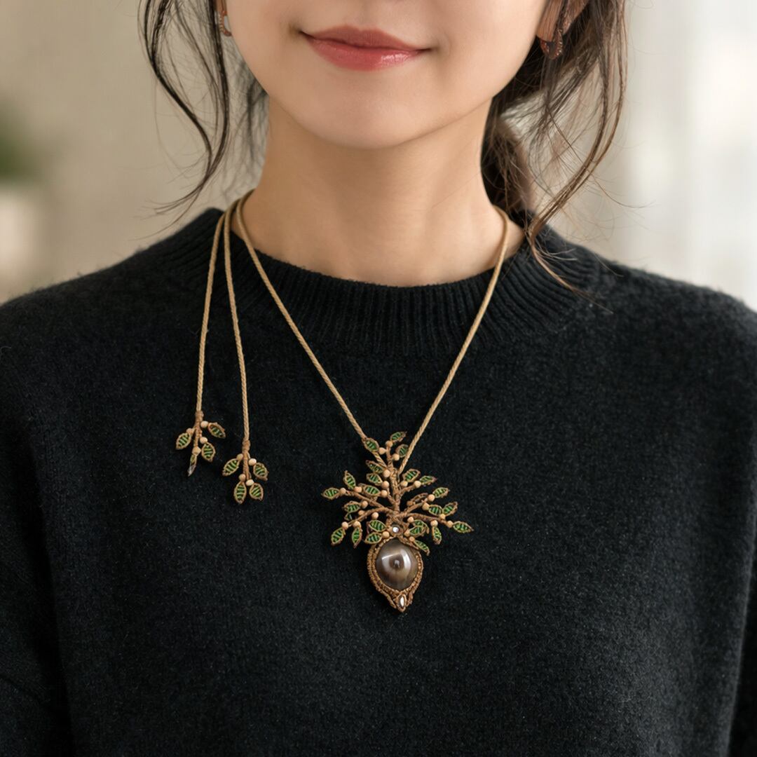 神眼◎『天眼石』と『白檀』生命の樹マクラメ編トップネックレス